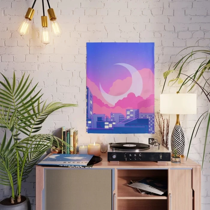 Холст, настенное искусство, Фиолетовое небо, луна, домашний декор, HD город, подарки, печатный плакат, картина, Современная Модульная без рамки для гостиной