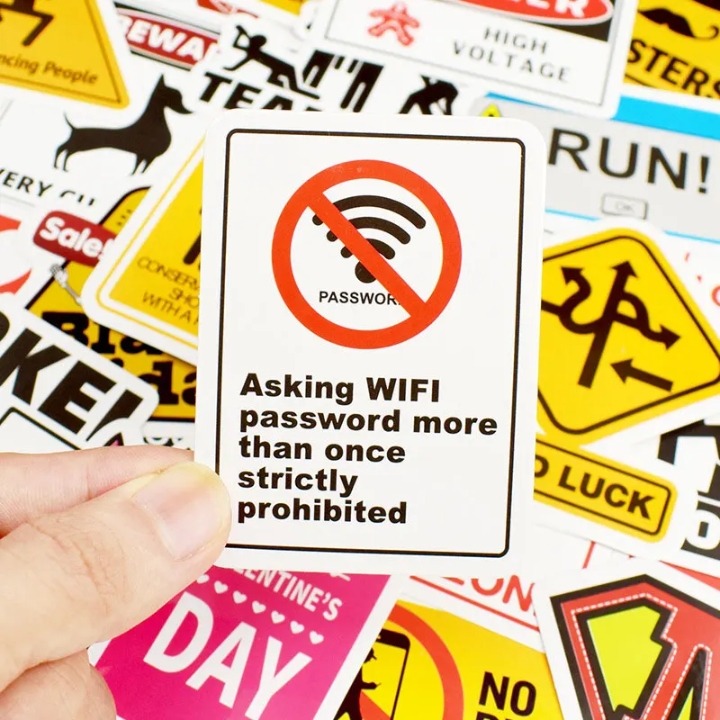 Забавные предупреждающие наклейки в упаковке, наклейки с напоминанием, наклейки, водонепроницаемые наклейки из ПВХ для скейтборда, стен, ноутбука, стационарных игрушек