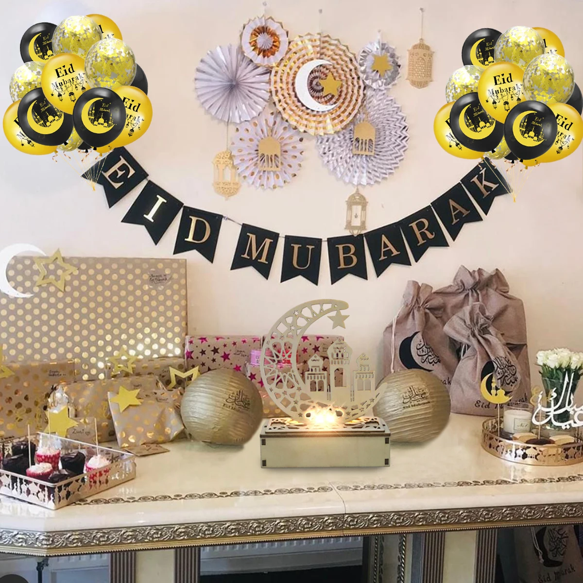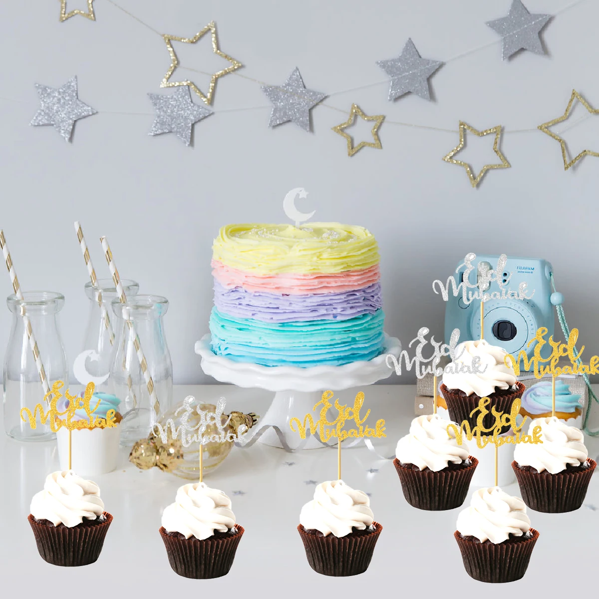 ИД Мубарак баннер воздушные шары на верхушке торта украшения на Рамадан Мубарак мусульман, фестиваль украшения для вечеринки сделанные своими руками