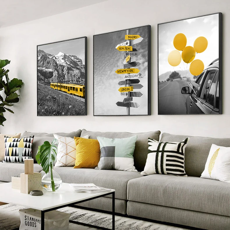 Скандинавская фотография пейзаж желтый стиль пейзаж черно-белый Северная Европа настенный плакат картины для декора гостиной