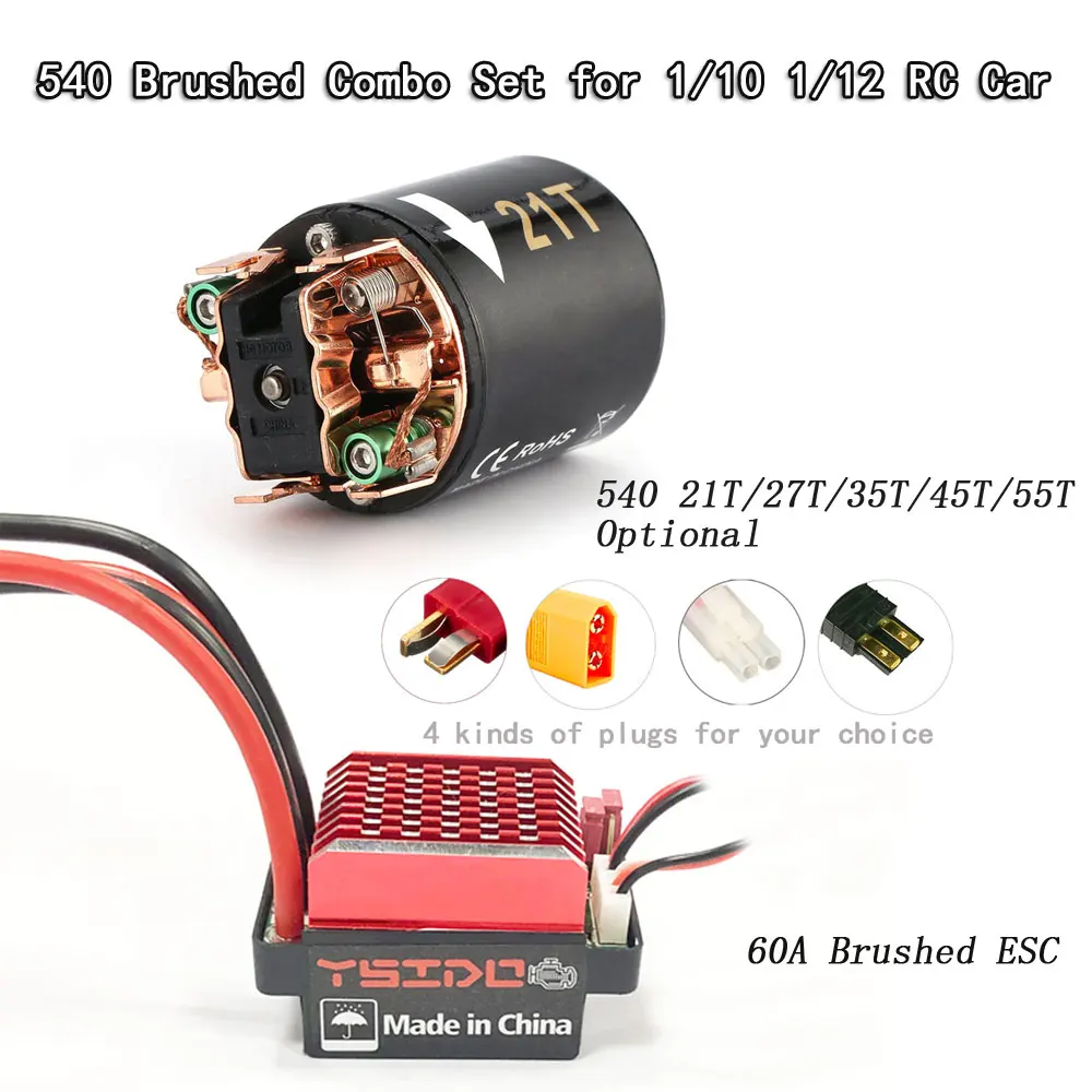 Щеточный двигатель YSIDO 540 21T 27T 35T 45T 55T 60A ESC для 110 112 RC Crawler Axial SCX10 AX103007 90046 Traxxas TRX4 D90 MST