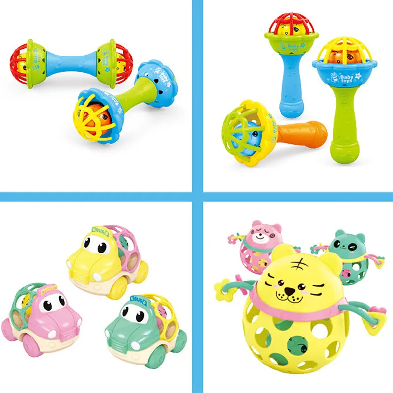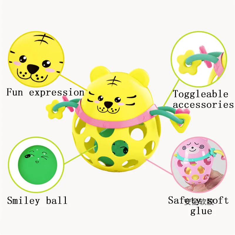 Детские погремушки, мягкие резиновые погремушки с колокольчиком, мяч для фитнеса, Мультяшные детские игрушки для упражнений, Игрушки для раннего развития