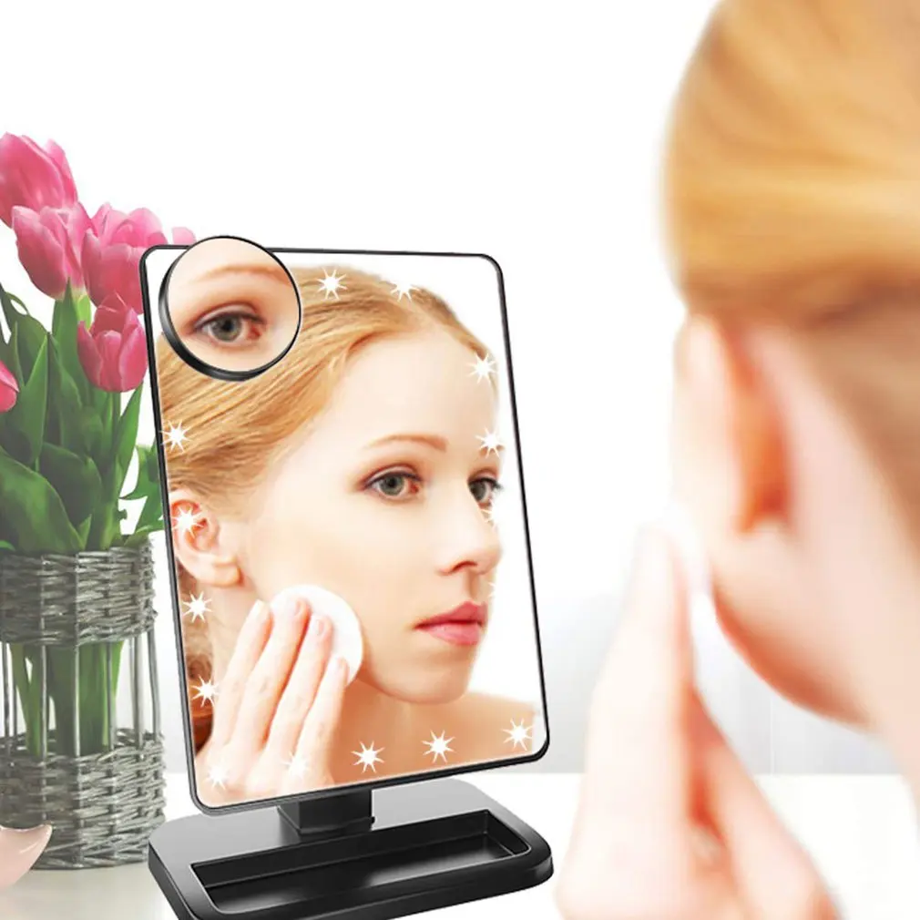 Зеркало для макияжа с сенсорным экраном, 20 светодиодов, беспроводное