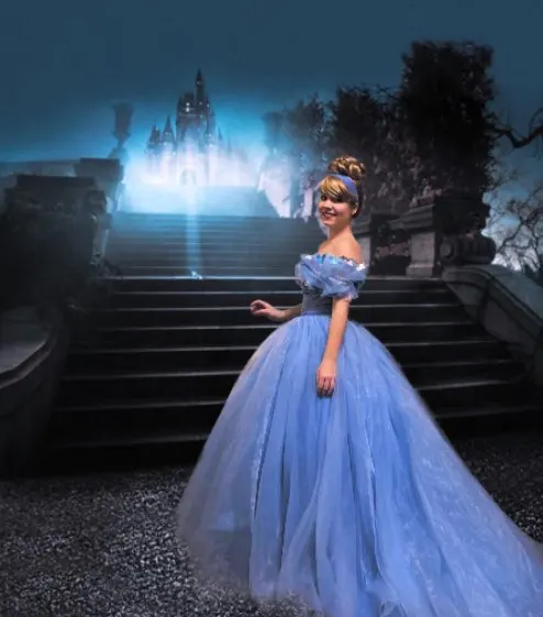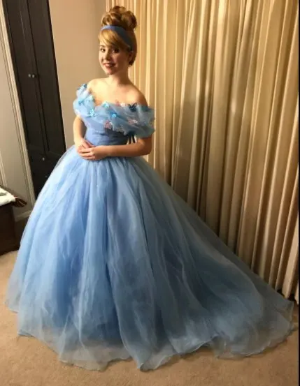 Бальное платье из органзы, длинное синее платье для косплея, с открытыми плечами, 2021