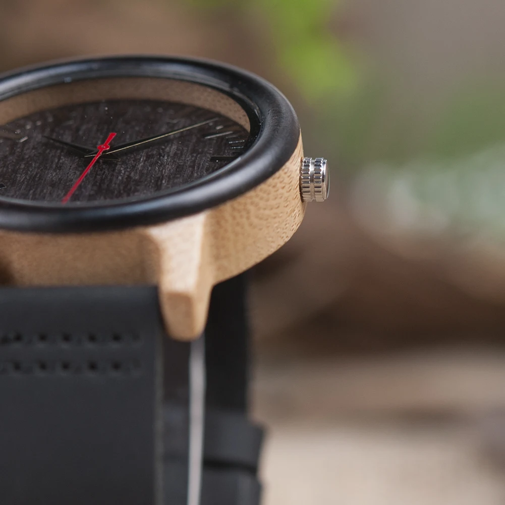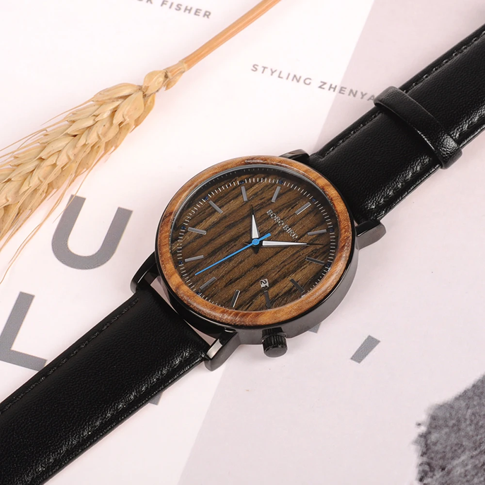 Мужские деревянные часы BOBO BIRD, кварцевые часы с кожаным ремешком для мужчин, кварцевые наручные часы ручной работы для мужчин, деревянные часы, мужские часы