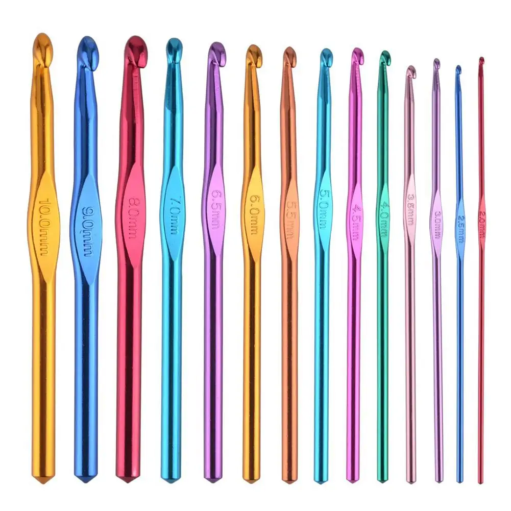 14 шт. Алюминий вязальные крючки комплект эргономичные сцепление очень удобные мягкие ручки Вязание иглы DIY Швейные Ремесло