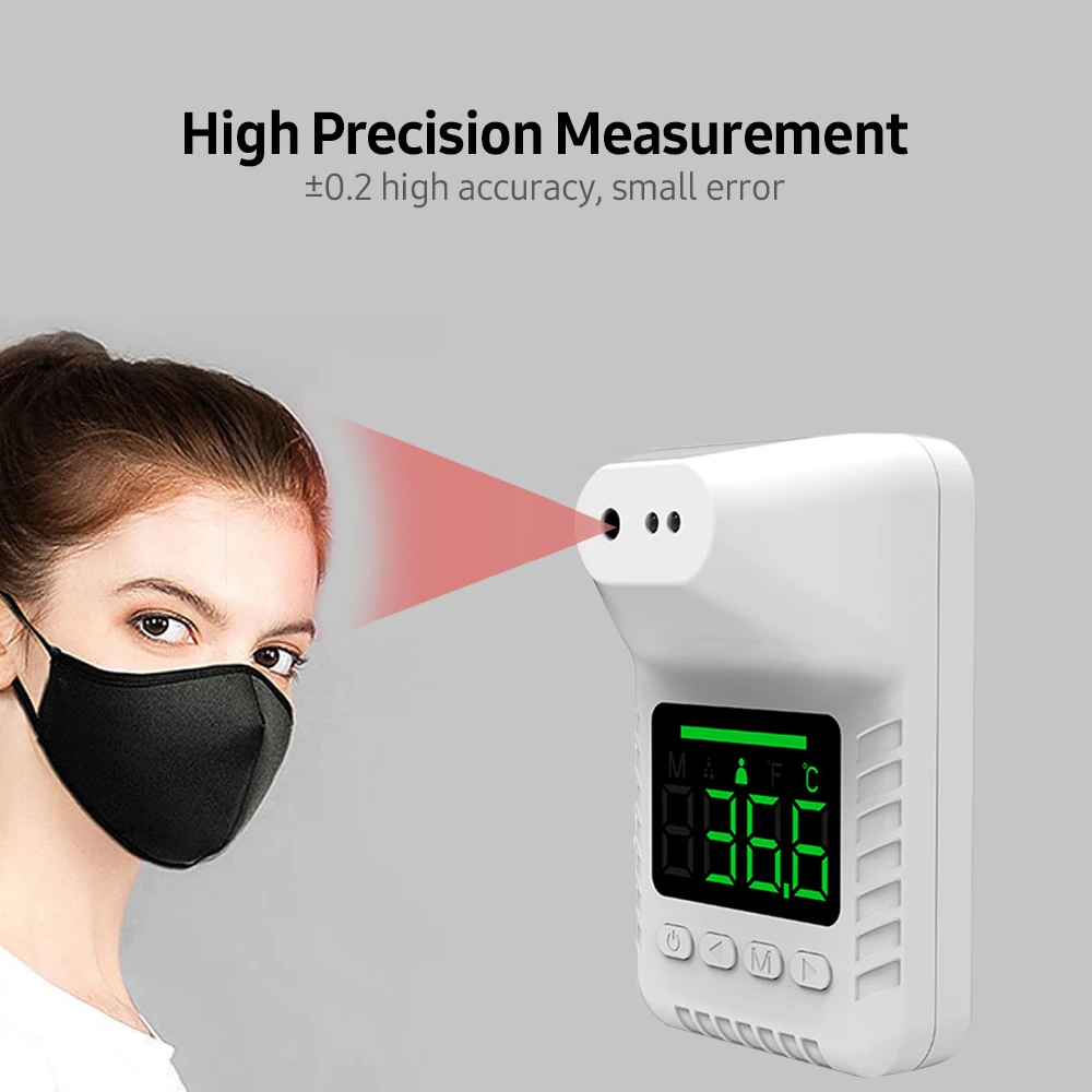 Особенности:Быстрое измерение, бесконтактный инфракрасный датчик обеспечивает стабильную и надежную работу, для безопасного использования.Высокая точность измерения ± 0,2 ℃, высокая точность, небольшие погрешности.Поддержка переключателя ℃/℉, более удобный в использовании.Высокотемпературная сигнализация, когда температура тела выше 37,3 ℃, экран дисплея инфракрасного термометра отправит сигнал тревоги.Он поддерживает 6 видов языков для голосового вещания, подходит для клиентов в разных странах.Широкое применение, подходит для школы, станции, супермаркета, клиник, семейного использования и т. д.Спецификация:Метод измерения: БесконтактныйРасстояние измерения: 1 см ~ 10 смТочность измерения: ± 0,2 ℃Единица измерения температуры: ℃/℉Диапазон измерения: 20 ℃ ~ 43 ℃Время отклика: 0.5SИсточник питания: 3 * AAA батареи/18650 литиевая батарея/USB (Аккумулятор в комплект не входит)Способ установки: настенный, фиксированный кронштейнЯзыки трансляции: английский, китайский, японский, итальянский, португальский и испанскийРазмер товара: 15*10*6,2 см/5,91*3,94 * 2.44inВес изделия: прибл. 185 г/6,53 унцийУпаковочный лист:1 * термометр1 * USB кабель2 * винты1 * Руководство пользователя