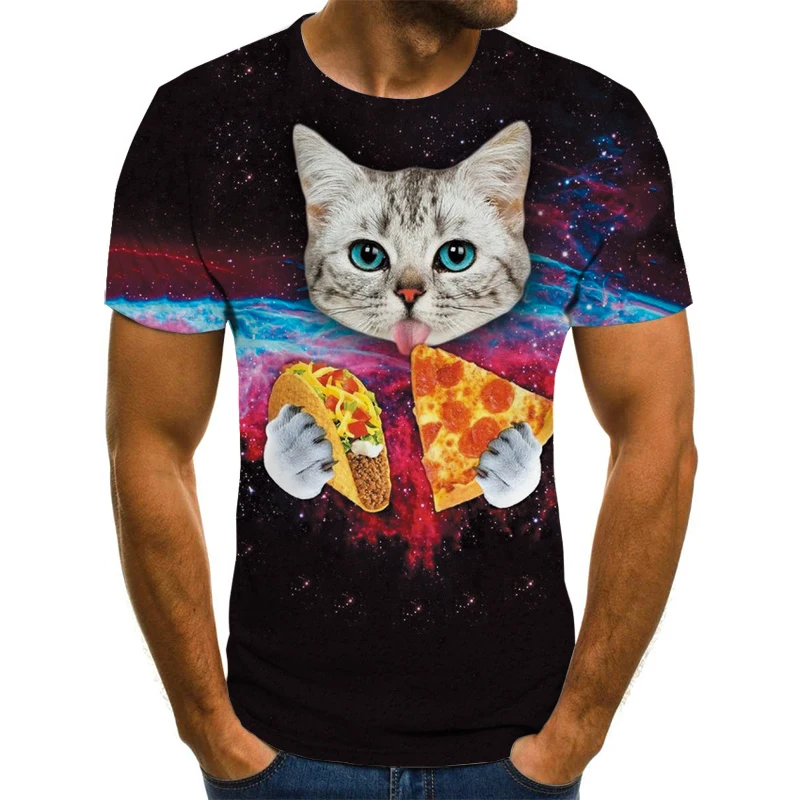 Новинка 2021, модная Новая мужская футболка с 3D принтом, кошка пицца, хип-хоп, новинка, повседневная мужская рубашка с круглым вырезом и коротким рукавом