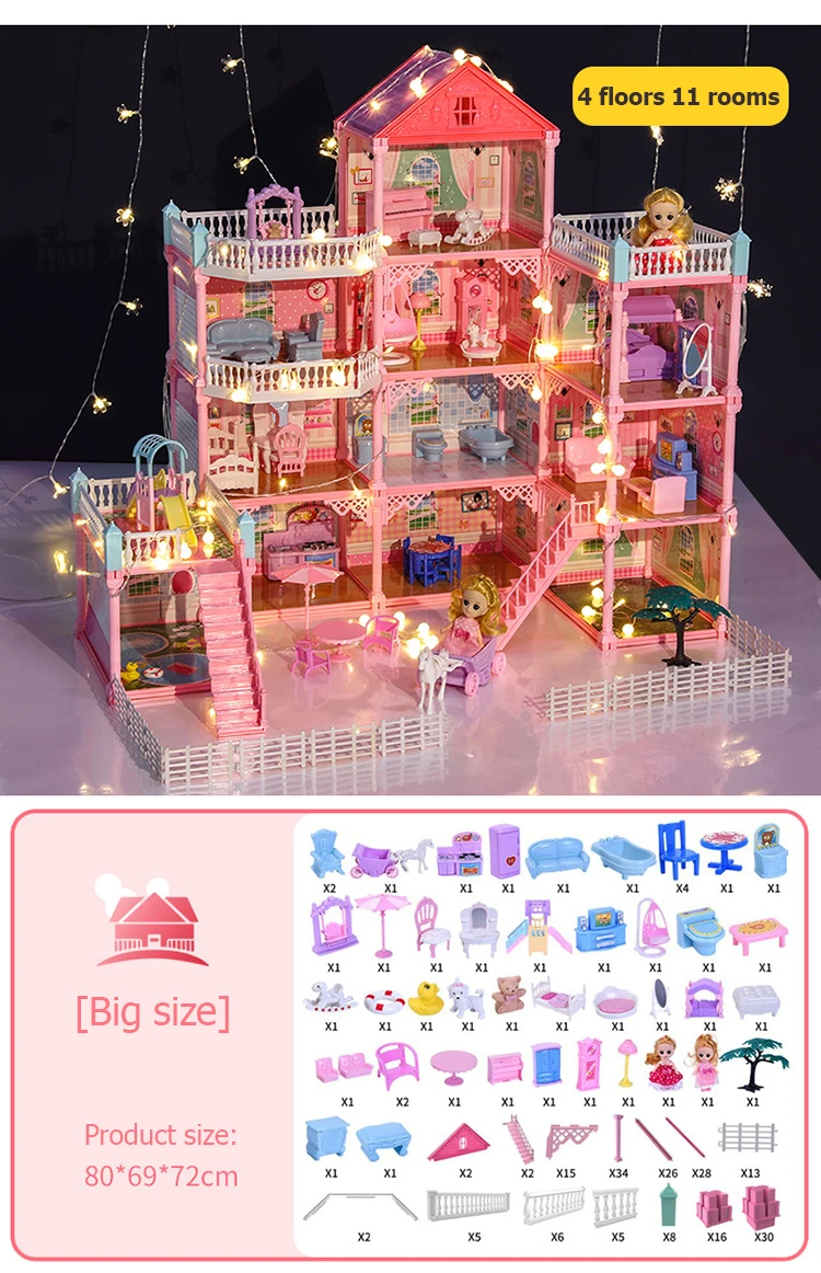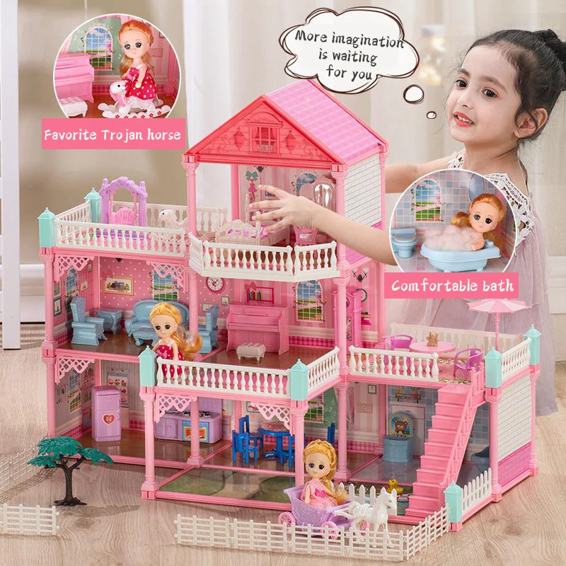 Кукольный дом для девочек, большого размера, кукольный дом ручной работы, замок, игрушечный дом, кукольный домик, подарки на день рождения, развивающие игрушки