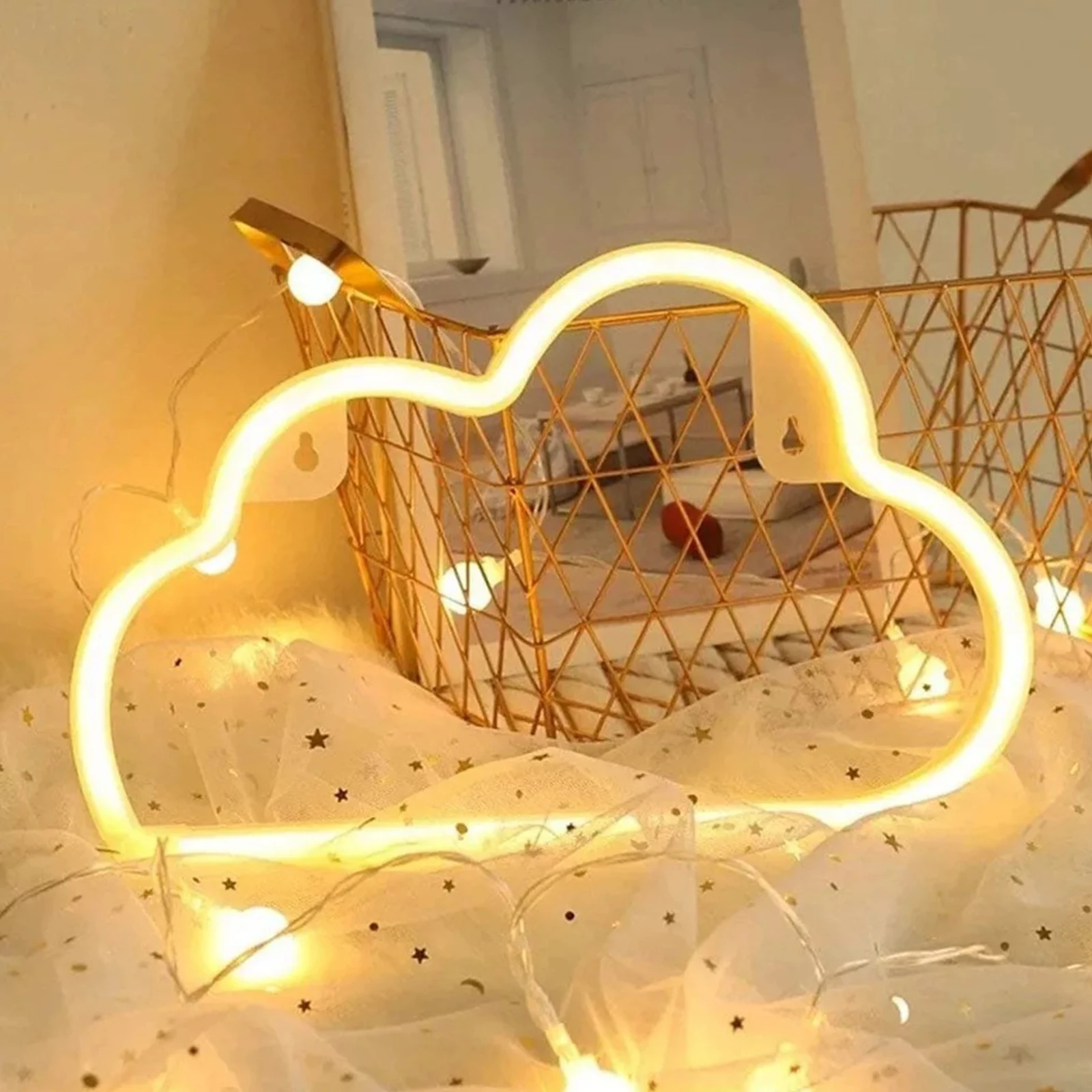 Неоновый светильник в виде облака для декора стен, декоративный светодиодный светильник с питанием от USB или аккумулятора для девочек, детская комната, спальня, день рождения