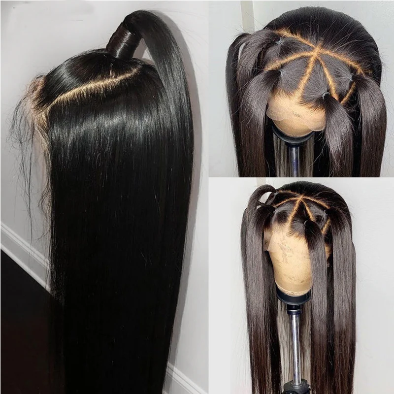 Бесклеевые шелковистые прямые передние парики на сетке, натуральный...
