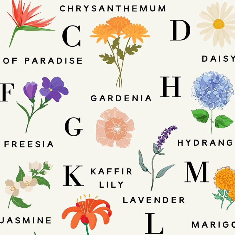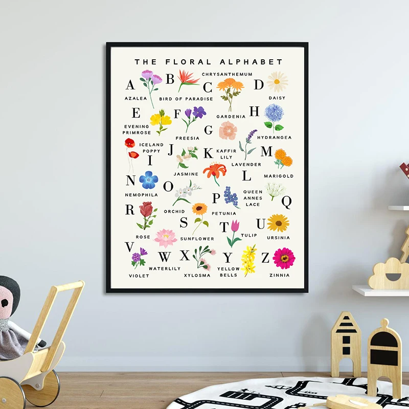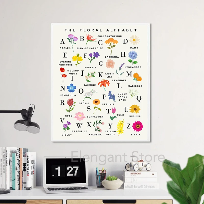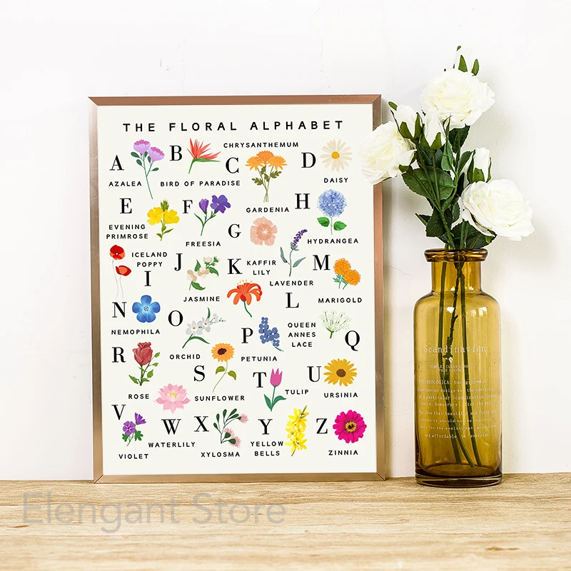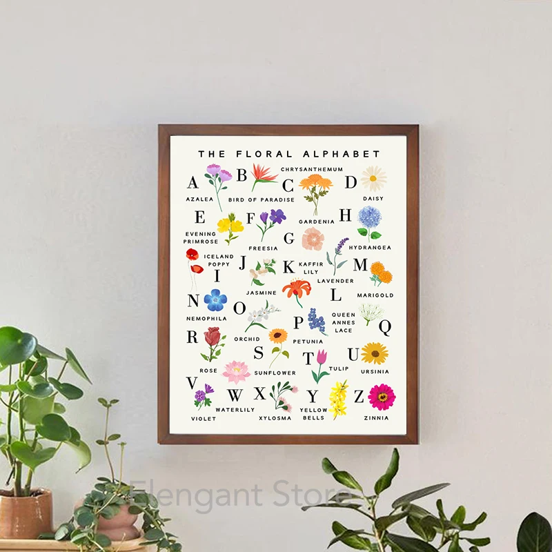 Картина на холсте с изображением цветов, алфавита, цветов, садоводства, Азбука, учебный плакат натуральный декор для детской комнаты