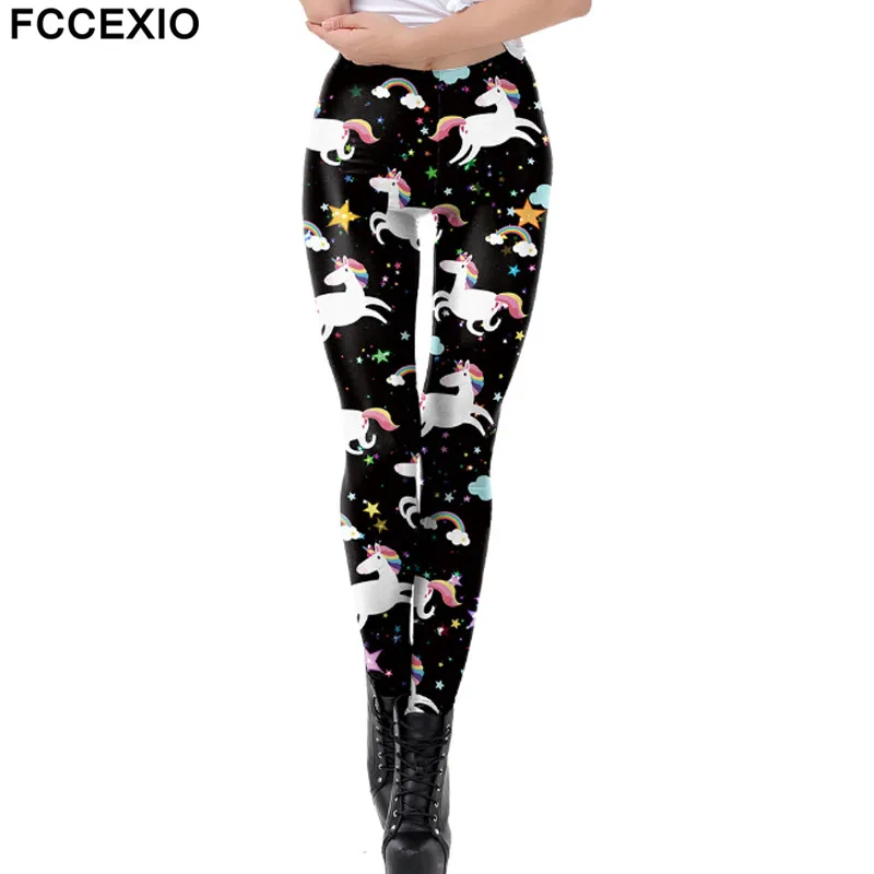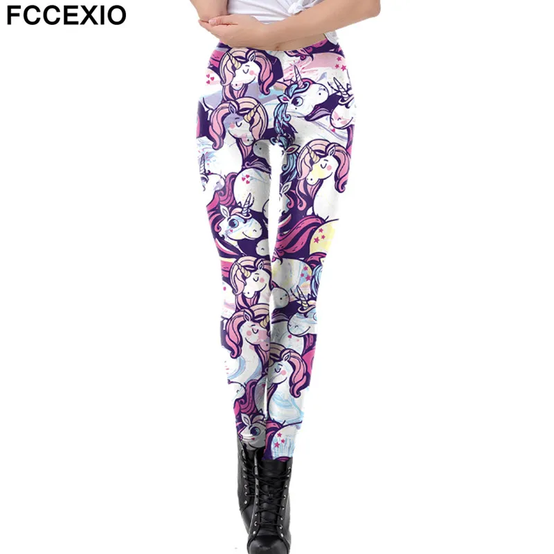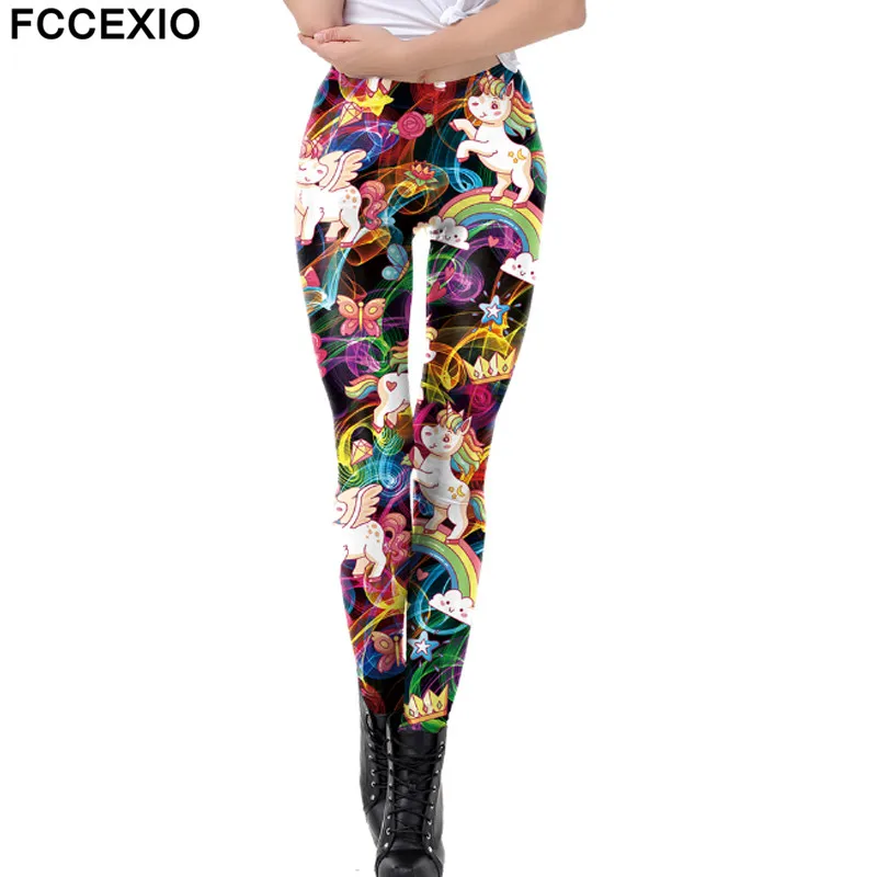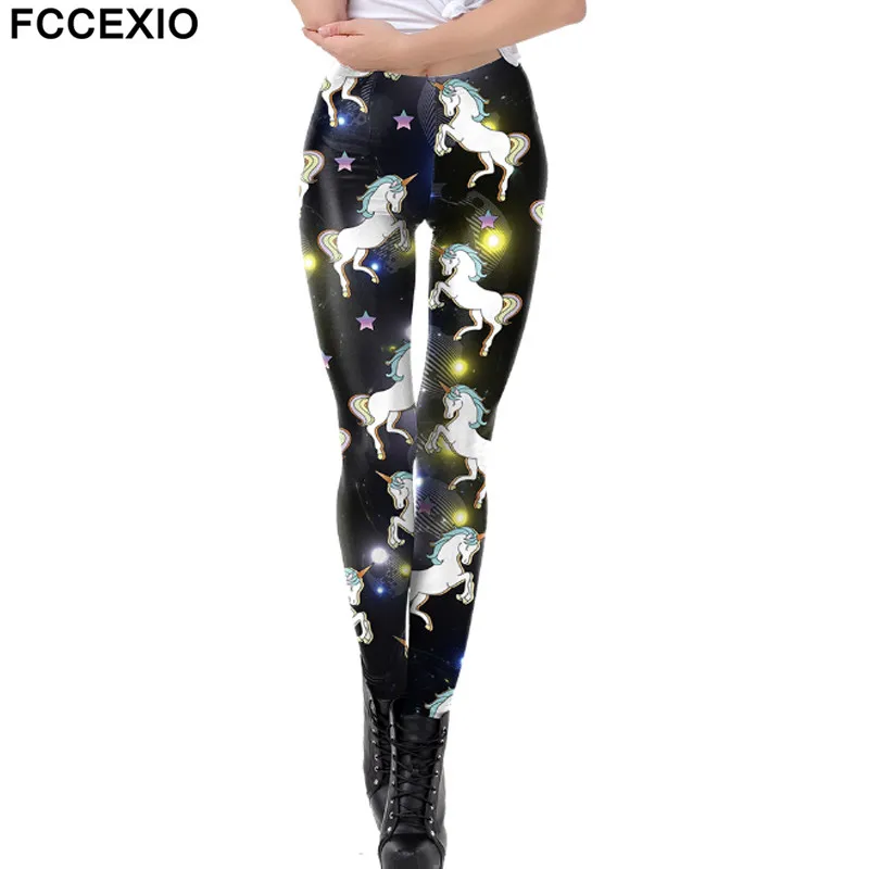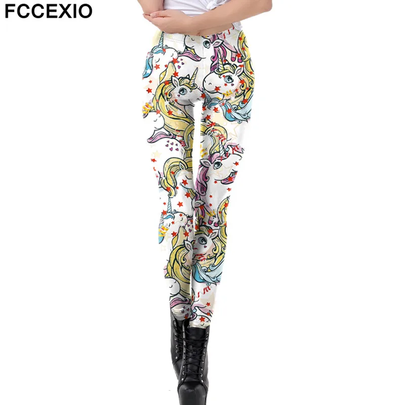 Леггинсы женские FCCEXIO, с принтом единорога, спортивные легинсы, для фитнеса, Сексуальные облегающие брюки