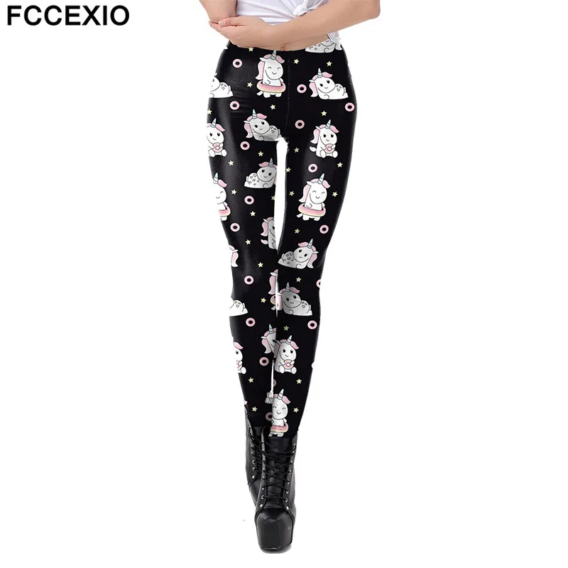 Леггинсы FCCEXIO женские с мультяшным принтом, эластичные штаны для бега и фитнеса, с эффектом пуш-ап, с изображением единорога и кота