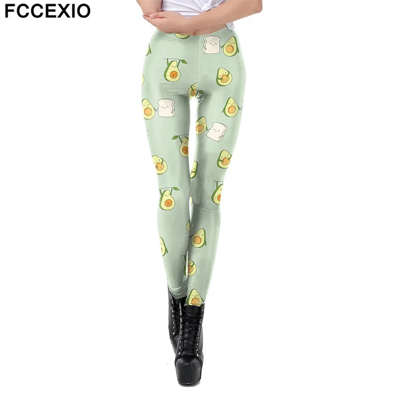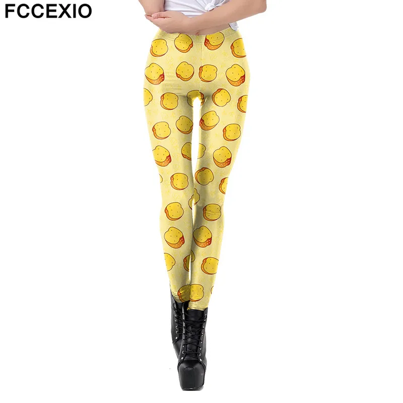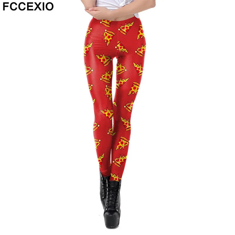 Женские леггинсы FCCEXIO, милые штаны с принтом пиццы, брюки высокого качества, спортивные Леггинсы для фитнеса, женские колготки Пуш-ап, 2021