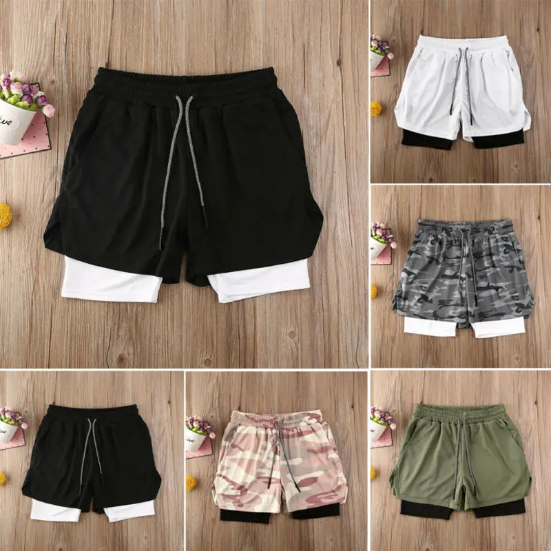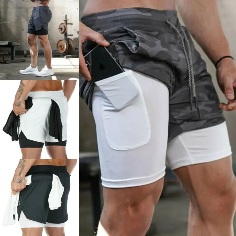 Новые мужские шорты для бега 2 в 1 Спортивные шорты мужские модные ...