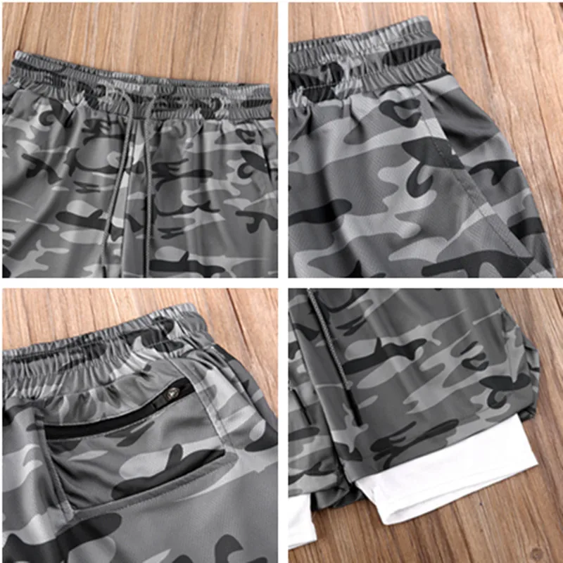 Новинка 2021, камуфляжные шорты для бега, мужские двухслойные быстр...