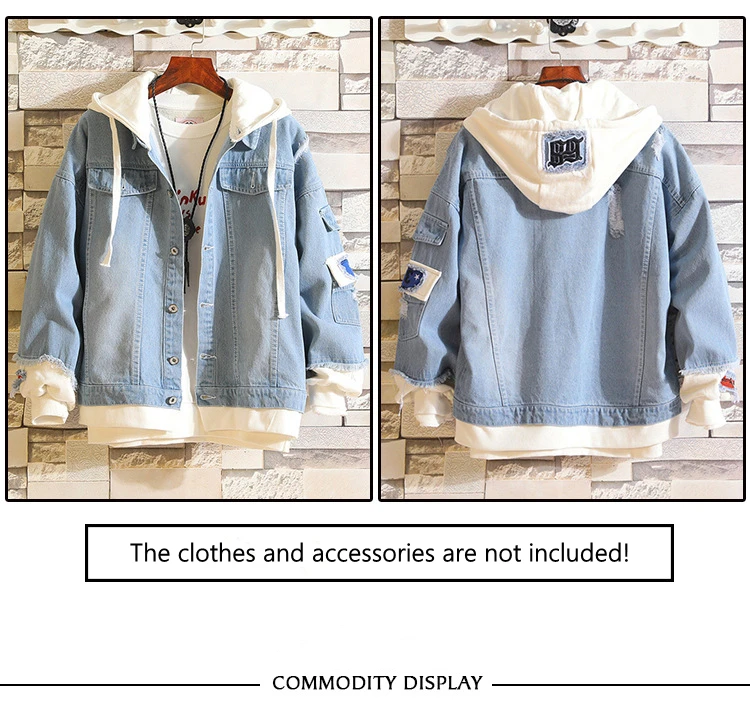 Джинсовая куртка с капюшоном, повседневная верхняя одежда из денима...