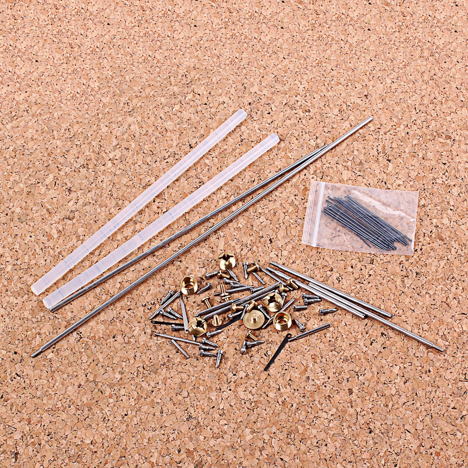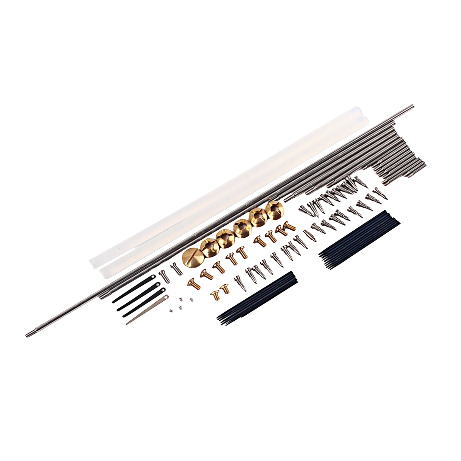 18 роликов24 игольчатые пружины26 винтов для крысиного хвоста4 x трости4 x Герконовые винты2 x регулировочные винты3 х гайки11 винтов с круглой головкой (8 больших, 3 маленьких)2 х термоплавкий клей