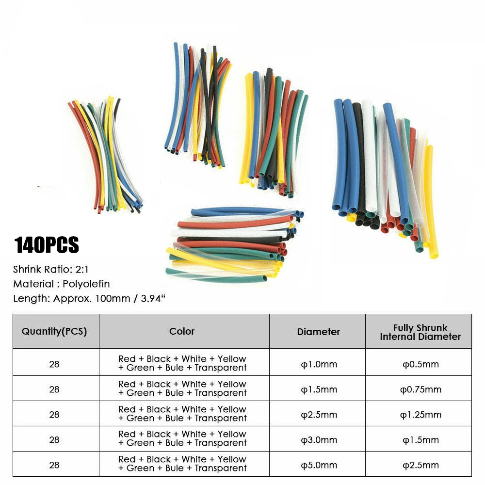 Коэффициент усадки: 2:1 (будет максимально сокращаться до 1/2 его поставляемого диаметра)Минимальная температура усадки: + 70 °CПолная Температура усадки: + 110 °C максимумРабочая температура: от-55 °C до + 125 °CПрочность на растяжение: 10,4 МПаДиэлектрическая прочность: 15 кВ/ммСпецификация производства: ISO9001Воспламеняемость: огнестойкостьУтверждения: Одобрено ULФормат поставки (круглый или плоский): продукт поставляется в плоском видеСпособ резки: ножницы или ножМатериал: ПолиолефинПосылка включает в себя:127 шт 2:1 термоусадочная установка30 шт. x 2,0x40 мм25 шт. x 2,5x40 мм20 шт. x 3,5x40 мм20 шт. x 5,0x40 мм16 шт. x 7,0x80 ммКабельный тестер кабеля 8 шт. x 10,0x80 мм8 шт. x 13.0x 85 ммВсего: 127 шт.