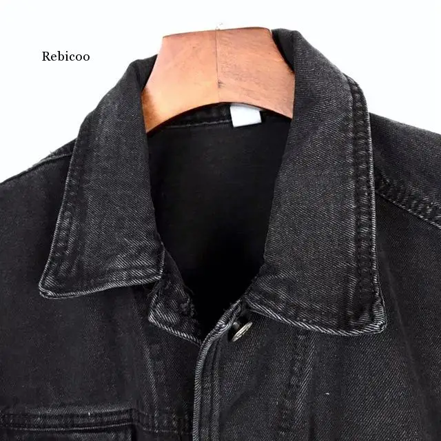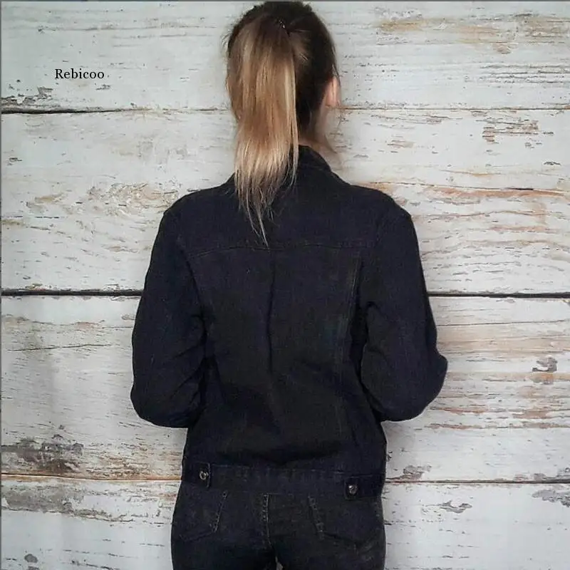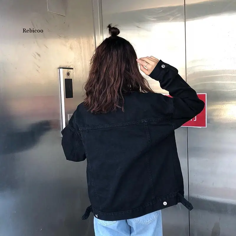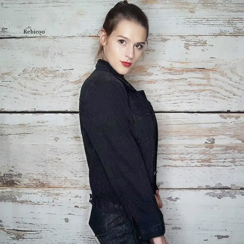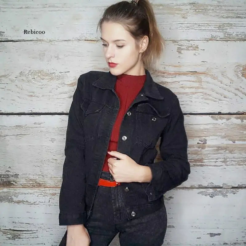 Женская джинсовая куртка в стиле Харадзюку, черная Повседневная джинсовая куртка в винтажном стиле, Осень-зима