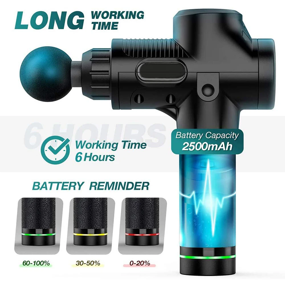 Особенности продукта: 1. Содержит шесть различных массажных головок для удовлетворения различных потребностей. ✔Шарообразная головка: подходит для массажа больших групп мышц, таких как руки, талия, бедра, бедра и икры ✔U-образная головка: подходит для массажа шеи, позвоночника и Ахилла ✔Цилиндрическая головка: подходит для воздействия глубоких тканей, таких как меридианы, ладони, подошвы и т. Д. ✔Плоская головка: подходит для расслабления и формирования различных частей мышц ✔J-образная головка: подходит для различных частей мышц, таких как меридианы, суставы, ладони и т. д. ✔D-образная головка: подходит для расслабления и формирования различных частей мышц. 2. Эффективно уменьшает мышечную жесткость и боль, улучшает кровообращение. 3. 30 передач регулировки, вы можете выбрать лучший режим для массажа 4. Длительный срок службы батареи, литиевая батарея большой емкости 2500mha, сверхдолгое время в течение 6-8 часов. 5. С защитой от перегрева, защитой от перегрева и другими защитными устройствами, хорошей системой отвода тепла, безопасной в использовании. 6. Эргономичный дизайн рукоятки минимизирует внешние вибрации и Удобная Нескользящая силиконовая ручка делает устройство более легким и удобным для вашего удовольствия. 7. С чемоданом, вы можете взять массажный пистолет в любом месте и наслаждаться массажем в любое время и в любом месте.