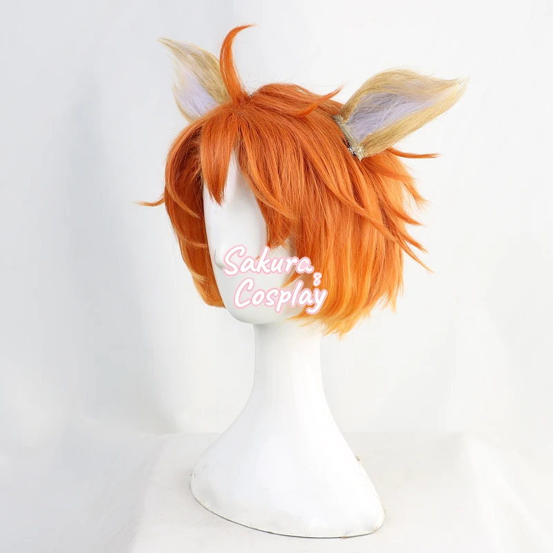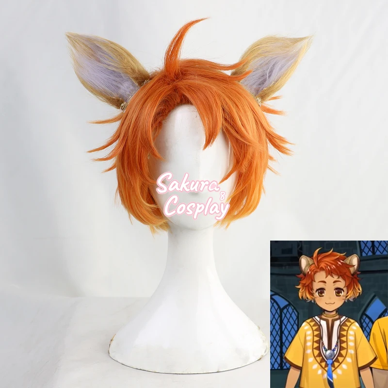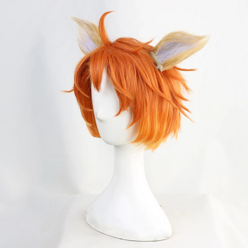 Костюм для косплея из витой страны чудес, короткие термостойкие синтетические волосы оранжевого цвета с ушками для Хэллоуина, карнавала вечерние + шапочка с бесплатным париком