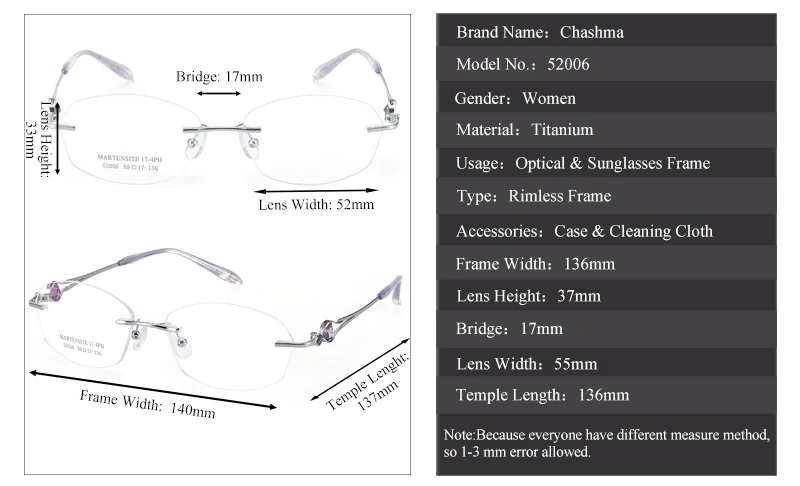 Оправа для очков женская, без оправы, классический дизайн, для коррекции близорукости