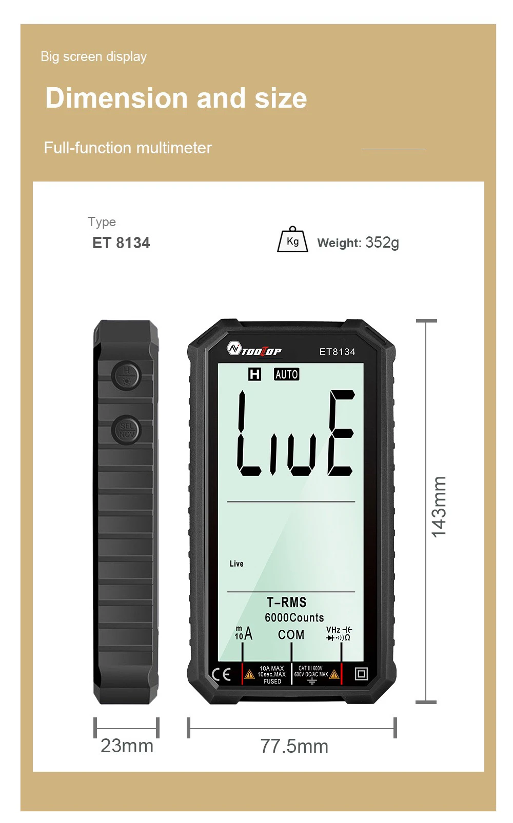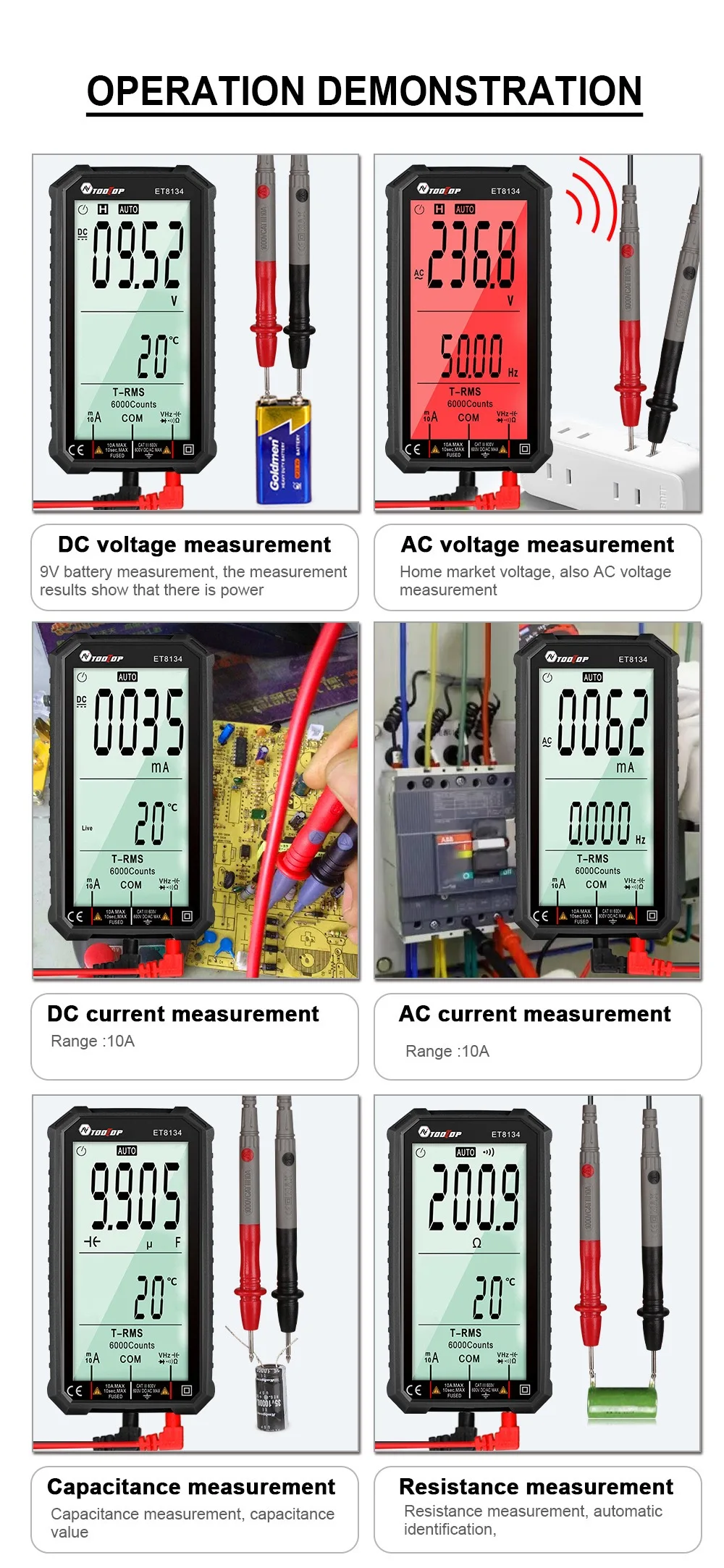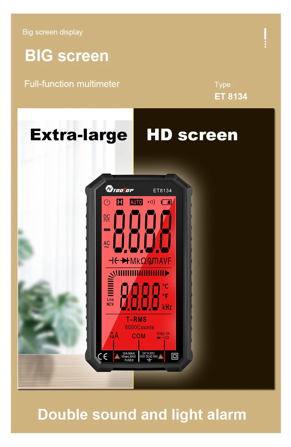 Цифровой мультиметр TOOLTOP ET8134, 4,7 дюйма, Измеритель постоянно...