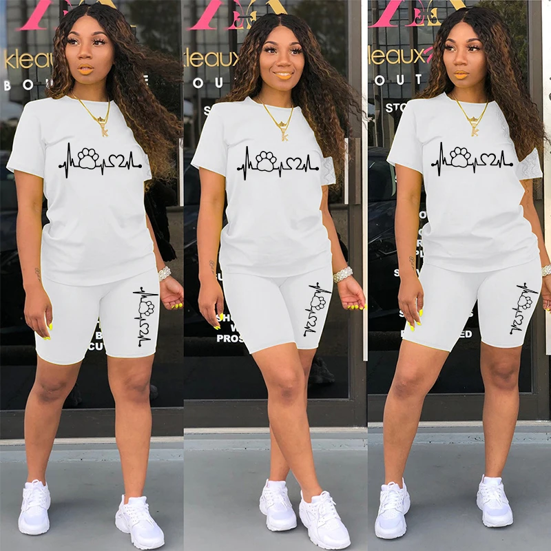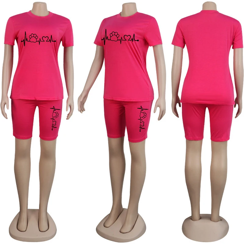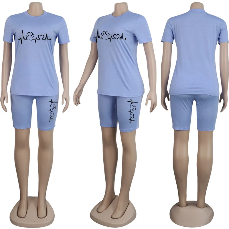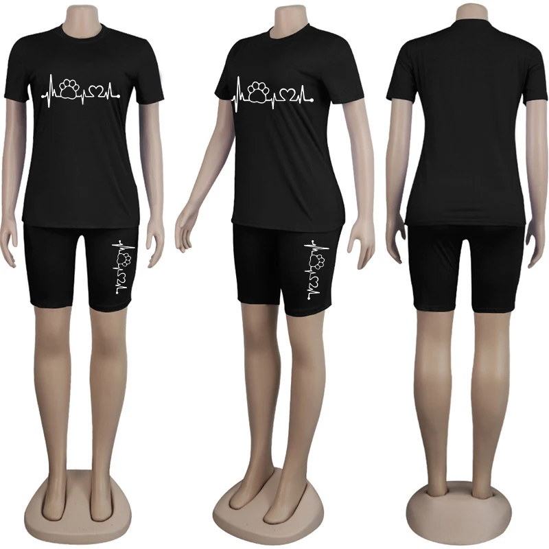 Женский спортивный костюм из двух предметов, летняя футболка с круглым вырезом и короткие брюки, повседневная одежда, топы с принтом, рубашки, шорты, брюки, костюмы