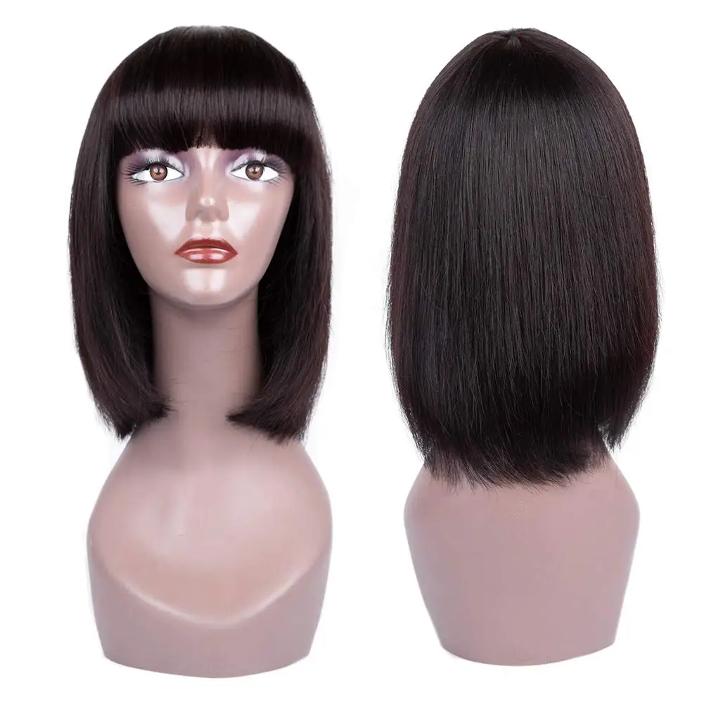 Короткие парики из человеческих волос с челкой, бразильские Натуральные Прямые волосы, парики из человеческих волос без клея, парики из человеческих волос ручной работы