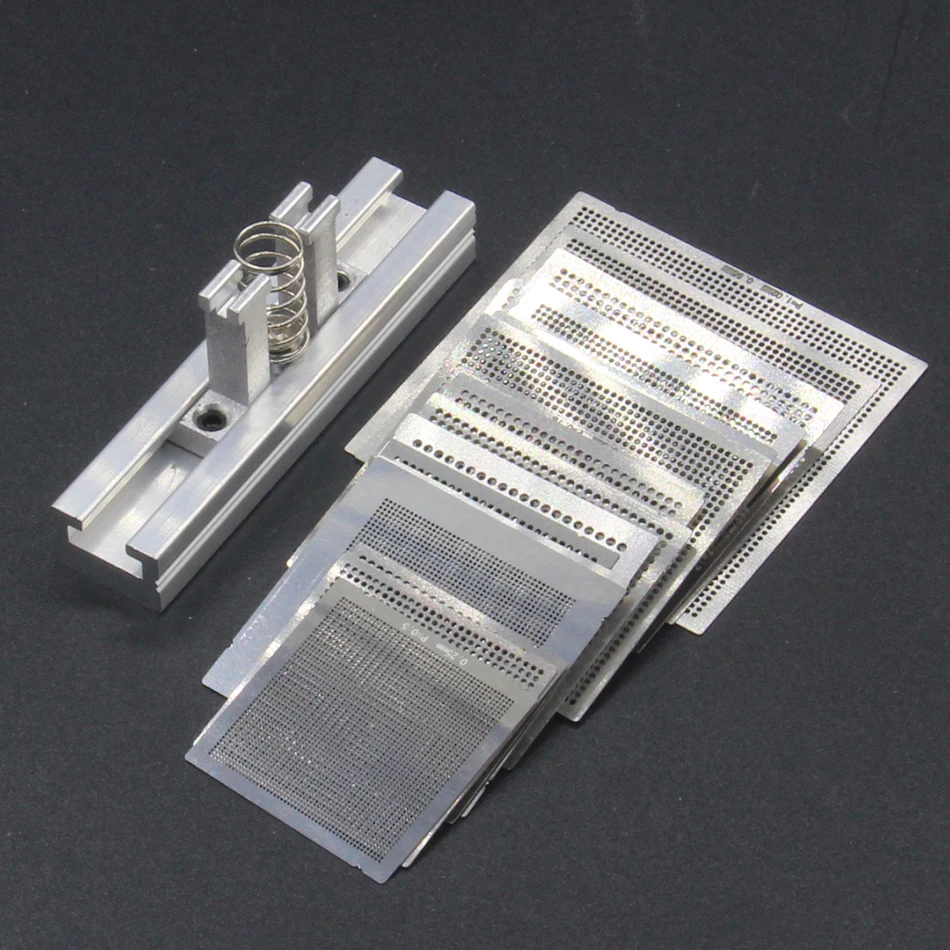 27 шт./компл. универсальная BGA Reballing трафареты прямого нагрева прямая Тепловая станцияУниверсальный трафареты прямого нагрева, список 27 шт.:1. Универсальный трафарет 0,30 мм (шаг 0,58 мм) 29*29 ----------------- 1 шт.2. Универсальный трафарет 0,35 мм (шаг 0,65 мм) 29*29 ----------------- 1 шт.3. Универсальный трафарет 0,40 мм (шаг 0,70 мм) 35,4*35,4 ------------ 1 шт.4. Универсальный трафарет 0,45 мм (шаг 0,78 мм) 35,4*35,4 ------------ 1 шт.5. Универсальный трафарет 0,5 мм (шаг 0,80 мм) 30,9*29,4 ------------ 1 шт.6. Универсальный трафарет 0,6 мм (шаг 0,90 мм) 45,4*45,5 ------------ 1 шт.7. Универсальный трафарет 0,6 мм (Шаг 1,0 мм) 45,4*45,4 ------------ 1 шт.8. Универсальный трафарет 0,6 мм (шаг 1,1 мм) 31,9*31,9 ------- ---- 1 шт.9. Универсальный трафарет 0,76 мм (шаг 1,27 мм) 50,0*50,0 ----------- 1 шт.10. Универсальный трафарет 0,5 мм (шаг 0,78 мм) 35*35 ----------------- 1 шт.11. Универсальный трафарет 0,5 мм (шаг 0,81 мм) 40*40 ----------------- 1 шт.12. Универсальный трафарет 0,55 мм (шаг 1,02 мм) 50,6*50,6 ---------- 1 шт.13. Универсальный трафарет 0,6 мм (шаг 0,99 мм) 24*24 ----------------- 1 шт.14. Универсальный трафарет 0,6 мм (шаг 0,99 мм) 27*27 ----------------- 1 шт.15. Универсальный трафарет 0,6 мм (шаг 0,99 мм) 30*30 ----------------- 1 шт.16. Универсальный трафарет 0,6 мм (шаг 0,99 мм) 33*33 ----------------- 1 шт.17. Универсальный трафарет 0,6 мм (шаг 1,01 мм) 41*41 ----------------- 1 шт.18. Универсальный трафарет 0,65 мм (Шаг 1,0 мм) 47,6*47,6 ----------- 1 шт.19. Универсальный трафарет 0,76 мм (шаг 1,27 мм) 30*30 --------------- 1 шт.20. Универсальный трафарет 0,76 мм (шаг 1,27 мм) 33*33 --------------- 1 шт.21. Универсальный трафарет 0,76 мм (шаг 1,27 мм) 34*34 --------------- 1 шт.22. Универсальный трафарет 0,76 мм (шаг 1,27 мм) 37*37 --------------- 1 шт.23. Универсальный трафарет 0,76 мм (шаг 1,27 мм) 41*41 --------------- 1 шт.24. Универсальный трафарет 1,00 мм (шаг 1,5 мм) 48,5*48,5 ------------ 1 шт.25. Универсальный трафарет 0,25 мм (шаг 0,5 мм) 35,3*35,3 ------------ 1 шт.26. Универсальный трафарет 0,30 мм (шаг 0,5 мм) 35,3*35,4 ------------ 1 шт.27. Универсальный трафарет 0,35 мм (шаг 0,6 мм) 35,5*35,5 ------------ 1 шт.Упаковочный лист:ПосылкаУниверсальный трафареты прямого нагрева 27 шт./компл. X1Прямая Тепловая станция X1ПосылкаУниверсальный трафареты прямого нагрева 27 шт./компл. X1Прямая Тепловая станция X1Вакуумная Ручка x 1
