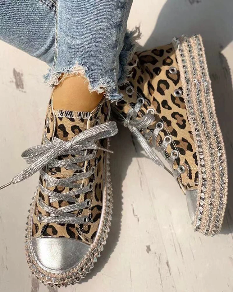 Женскиехолщовые модные кроссовки Женская на весенний сезон с леопардовым принтом Стразы с блестками на плоской подошве, женская обувь для отдыха; Молодежная повседневная обувь размера плюс