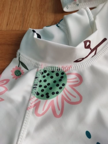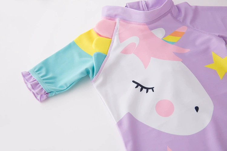 С защитой от солнца UPF 50 + с мультяшным принтом, это набор Рашгард сохраняет ее милой и защищенной в течение всего дня.