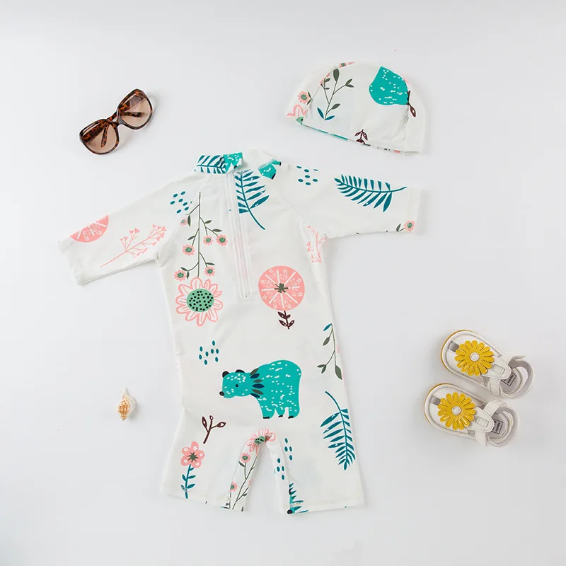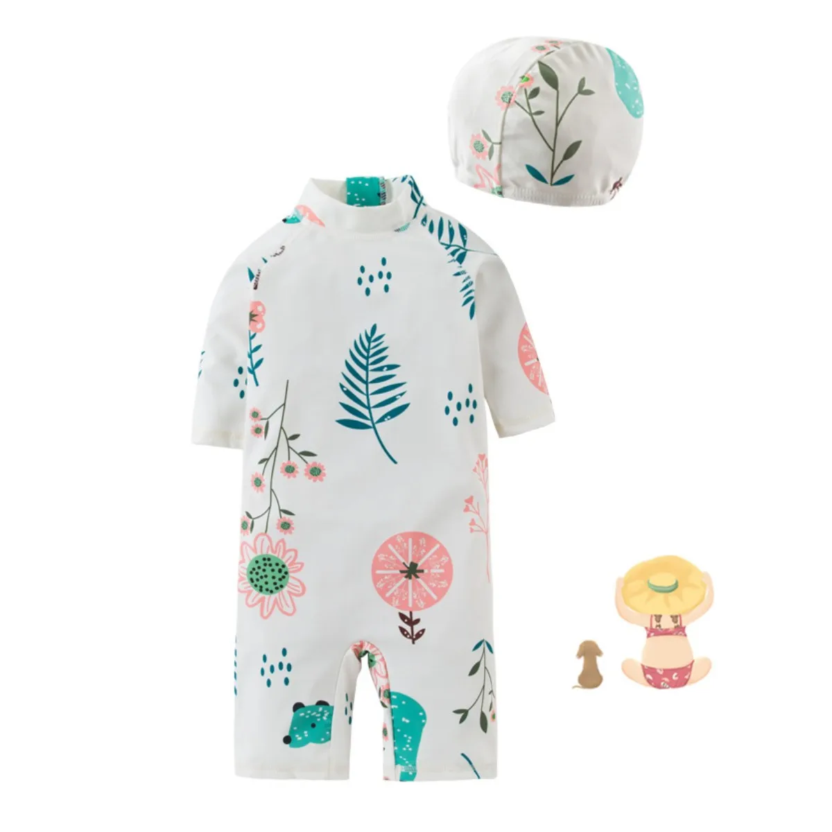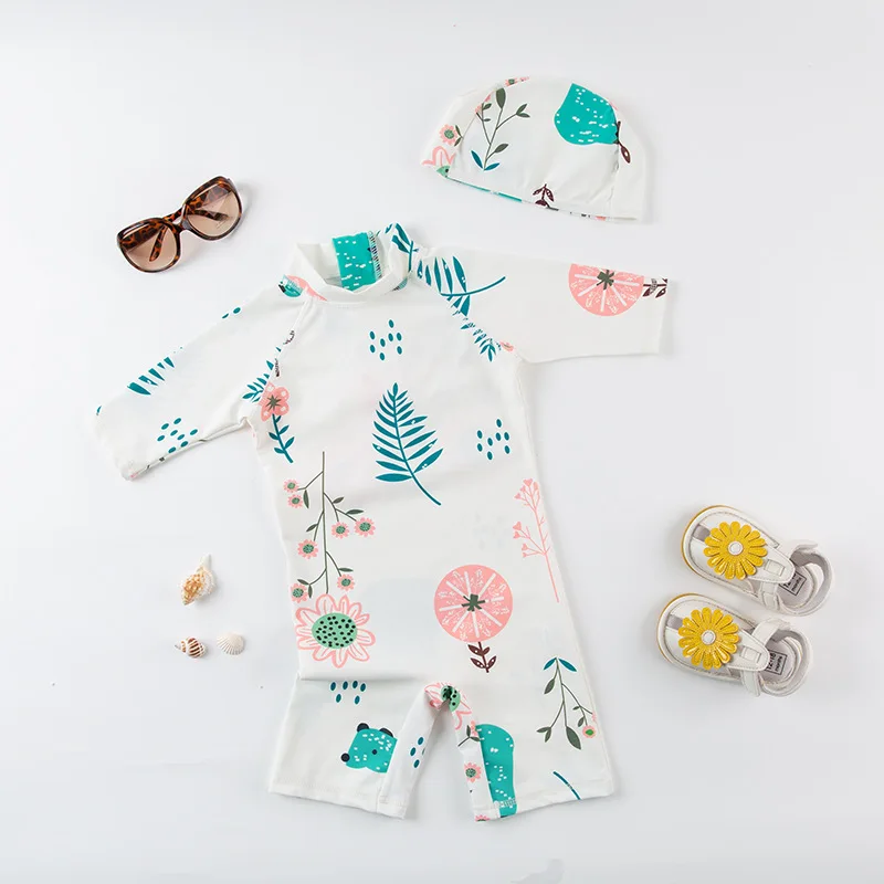 Купальник с принтом растений для маленьких девочек, детский купальный костюм с шапочкой, купальный костюм для девочек, От 1 до 7 лет для девочек, Новинка