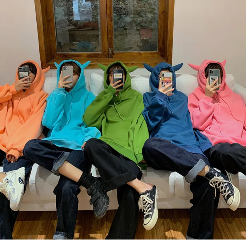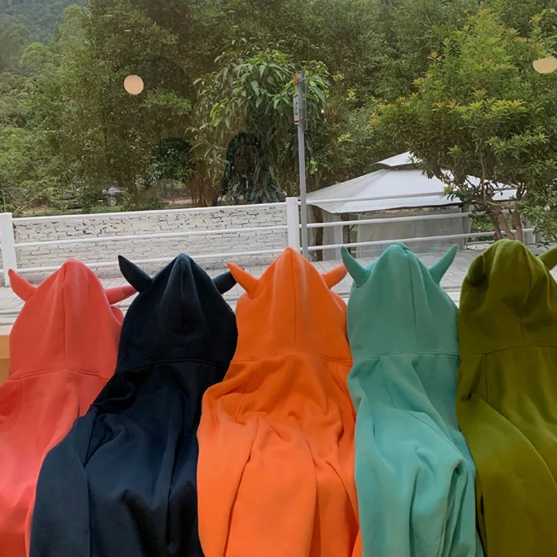 Женская толстовка с капюшоном ZOGAA, Весенняя теплая Свободная Толстовка в стиле Харадзюку с рогом дьявола, милые пуловеры для друзей, 2021