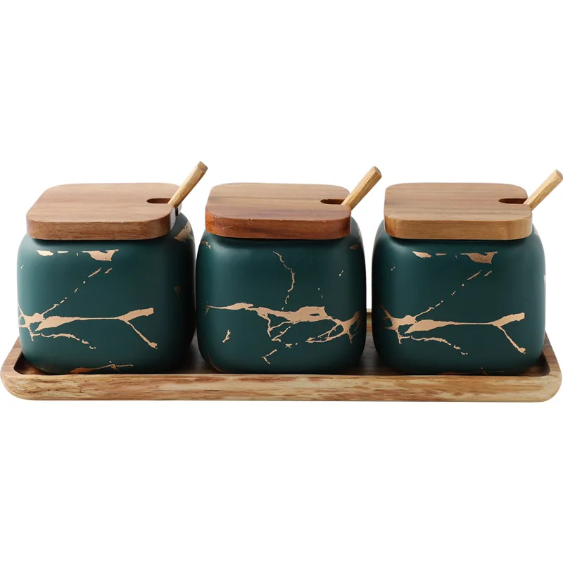 Набор керамических баков для приправ BOZZH с мраморным узором, бак ...