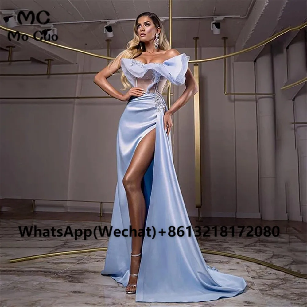 Женское вечернее платье-русалка, длинное платье с открытыми плечами и высоким разрезом, расшитое бисером, с аппликацией, для выпусквечерние вечера, 2021