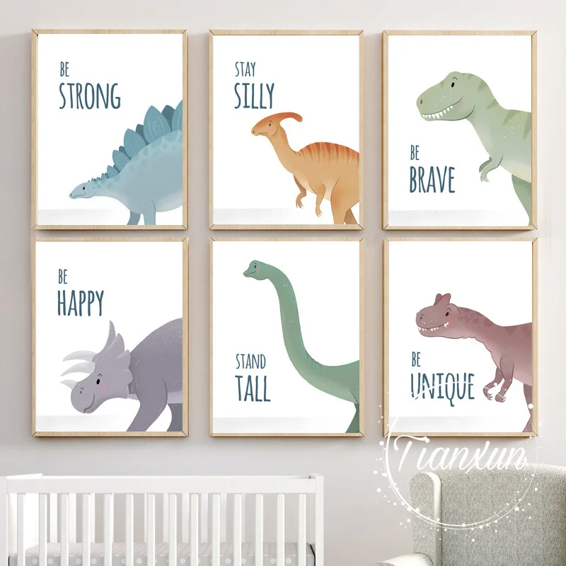 Настенная живопись Triceratops Pterosaur, мультяшный динозавр, Картина на холсте в скандинавском стиле, настенные картины для детской комнаты, Декор