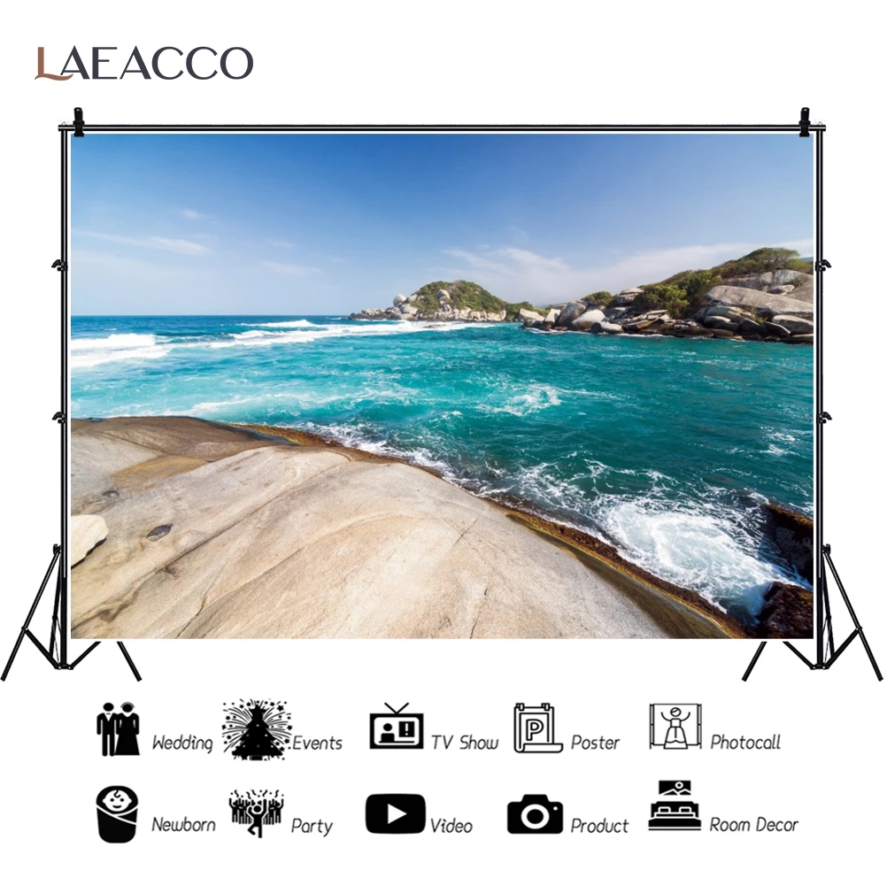 Laeacco голубые морские волны каменные деревья Природный Живописный фон для фотосъемки голубое небо ребенок праздник вид фото фон для фотостудии