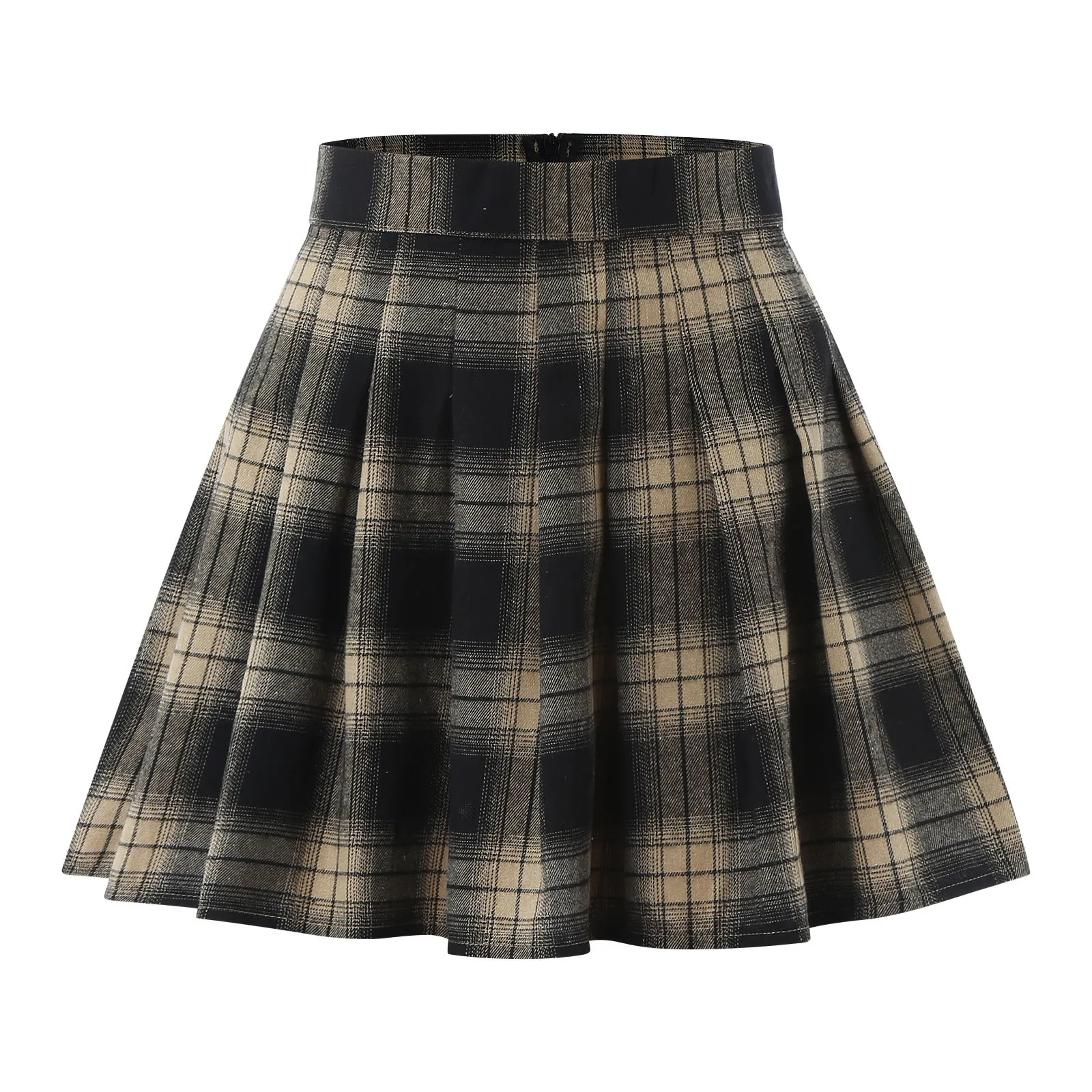 Женская плиссированная мини-юбка, короткая клетчатая юбка на молнии...