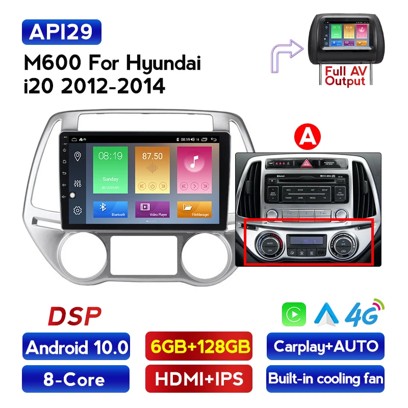 Автомобильный DVD-плеер, 6 + 128G, Android 10, Carplay, 4G Lte, GPS-навигация, мультимедиа, для Hyundai I20 2012-2014, радио, стерео, поддержка BT, Wi-Fi