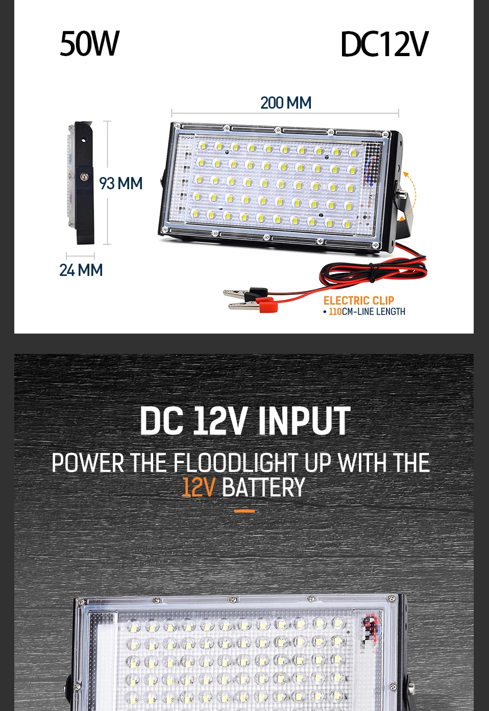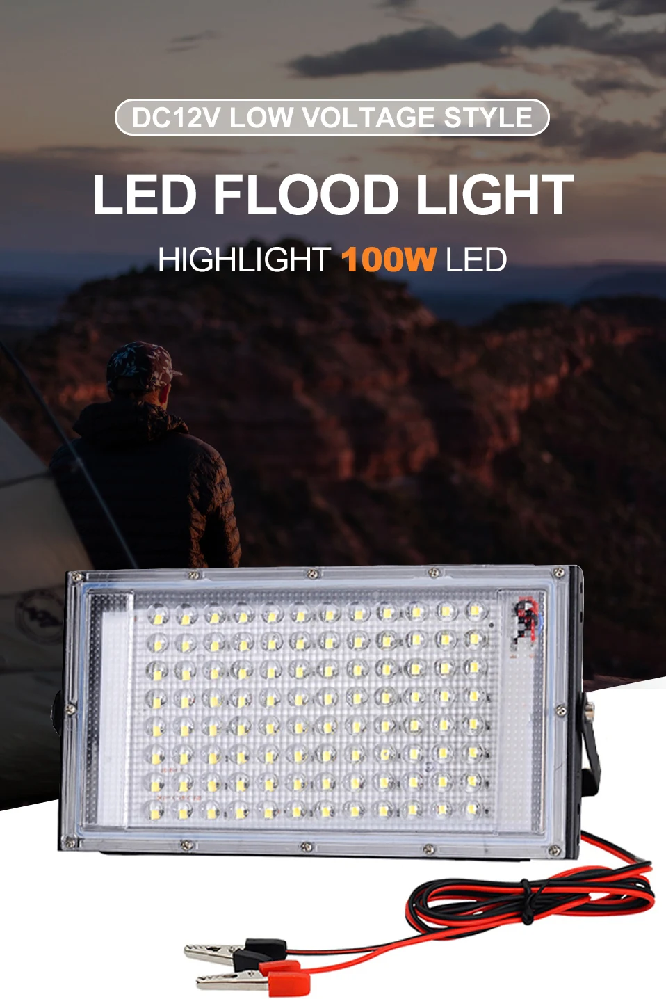 Светодиодный прожектор, 50 Вт 100 Вт 12 В постоянного тока, электрическое зарядное устройство, светодиодный аварийный светильник, уличное освещение точечного светильника для кемпинга, походов, работы