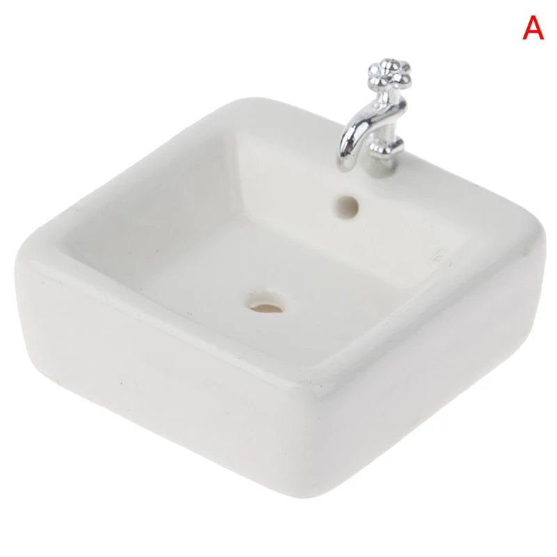 Квадратная раковина для кукольного домика 1:12, миниатюрная керамич...