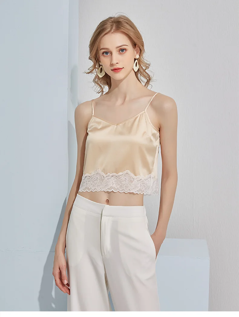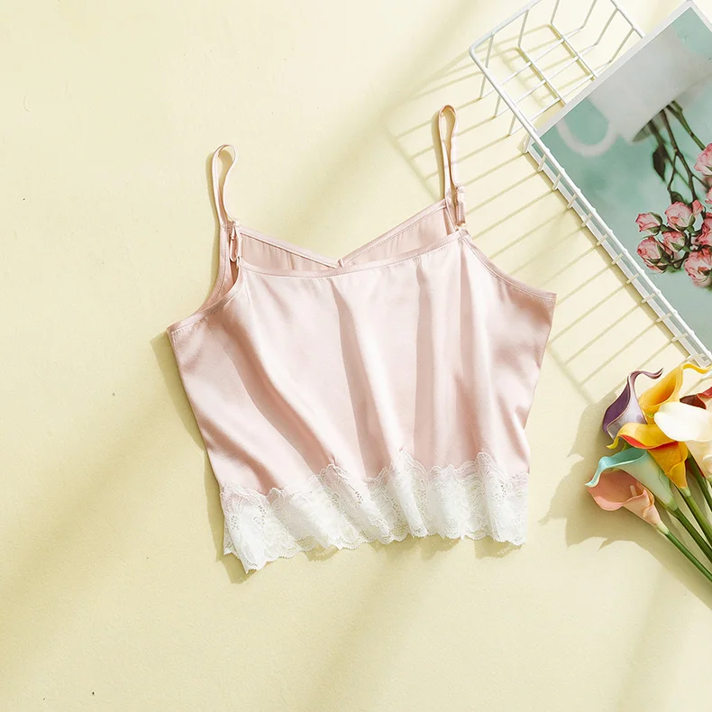 Топ SuyaDream женский Шелковый, кружевной однотонный розовый топ, 19 мм, весна-лето 2021