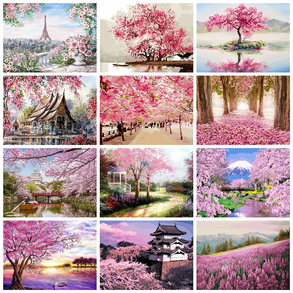 Алмазная живопись 5d HUACAN, мозаика с деревом, натуральный домашний декор, сделай сам, вышивка из страз, весенний пейзаж, ручная работа, настенное искусство