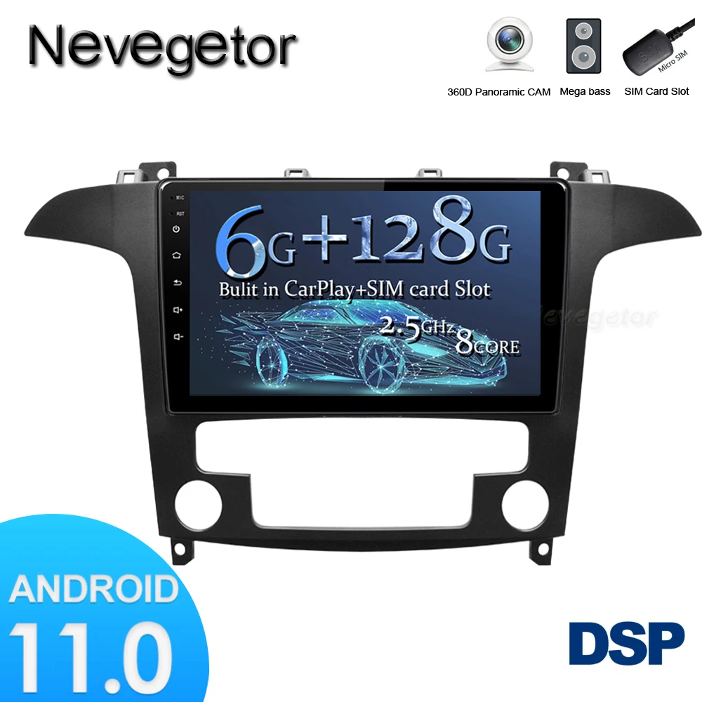 Автомагнитола 2 din, для S-Max S Max, 128, 2007, DSP, Android 11, 4G, 6 граммов + 2008 ГГц, мультимедийный видеоплеер, BT, FM, Wi-Fi, carplay