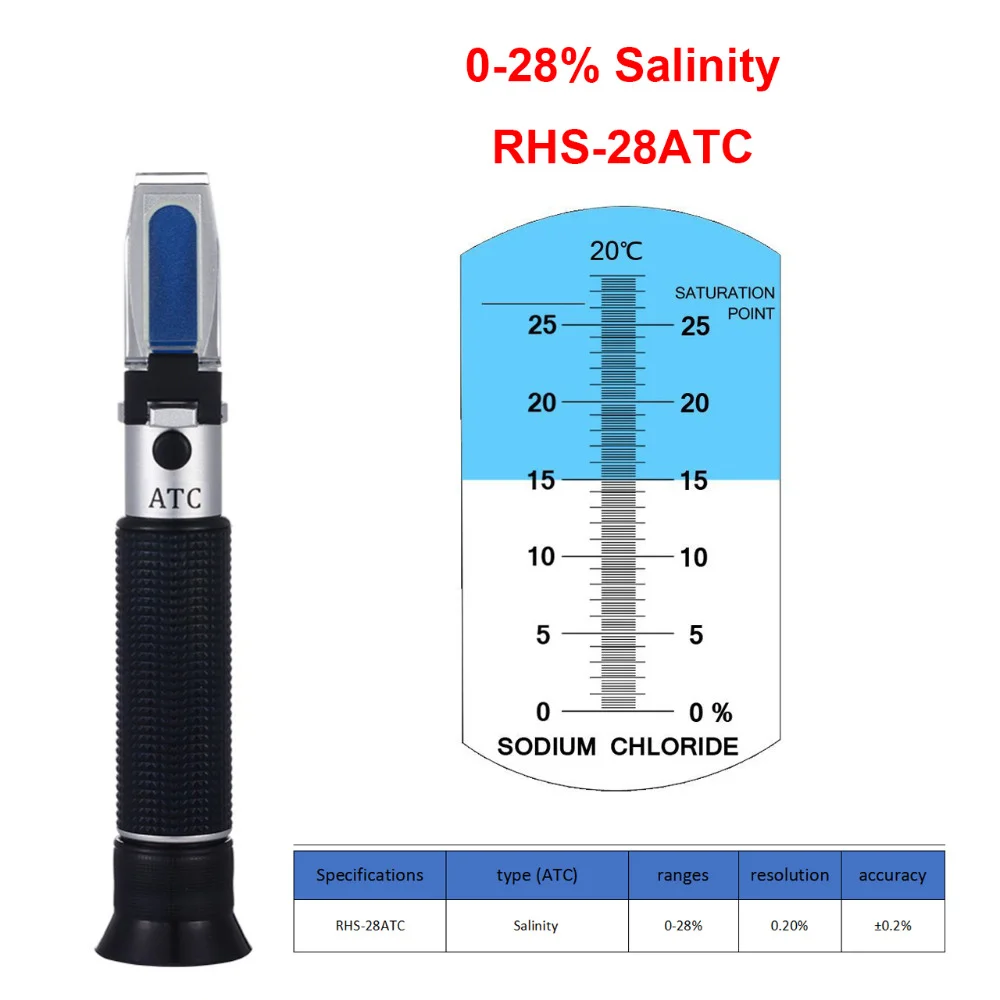 Рефрактометр солености 0-28% для соленой пищи, хлорид натрия, испытание на переработку морской пищи для сельского хозяйства