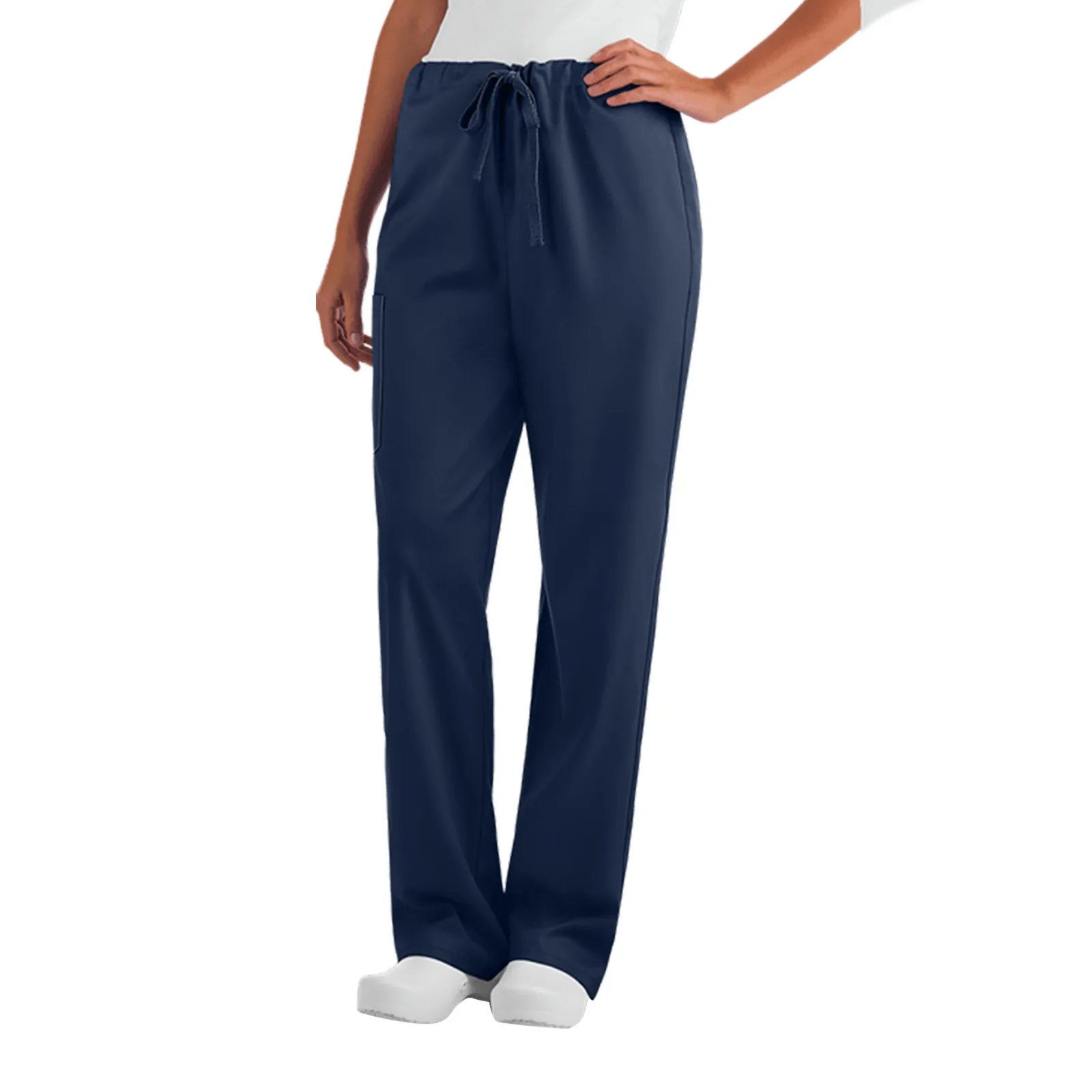 Женский костюм медсестры 40 #, Женский комплект из двух предметов: однотонный топ с V-образным вырезом и брюки с карманами и коротким рукавом