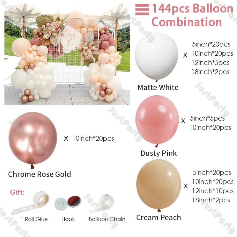Balloon ColorMatte White,Chrome rose gold,Cream Peach,Dusty Pink